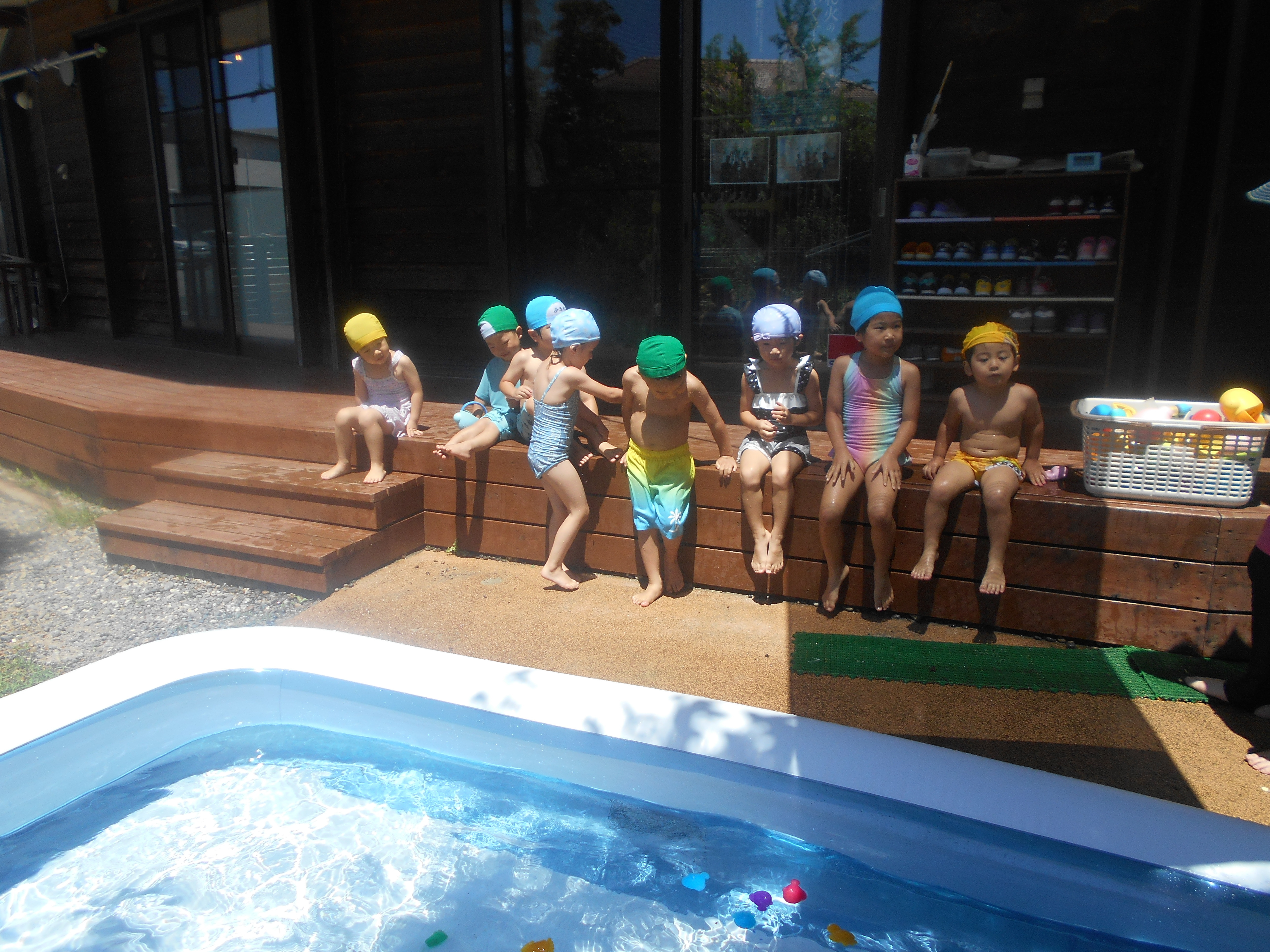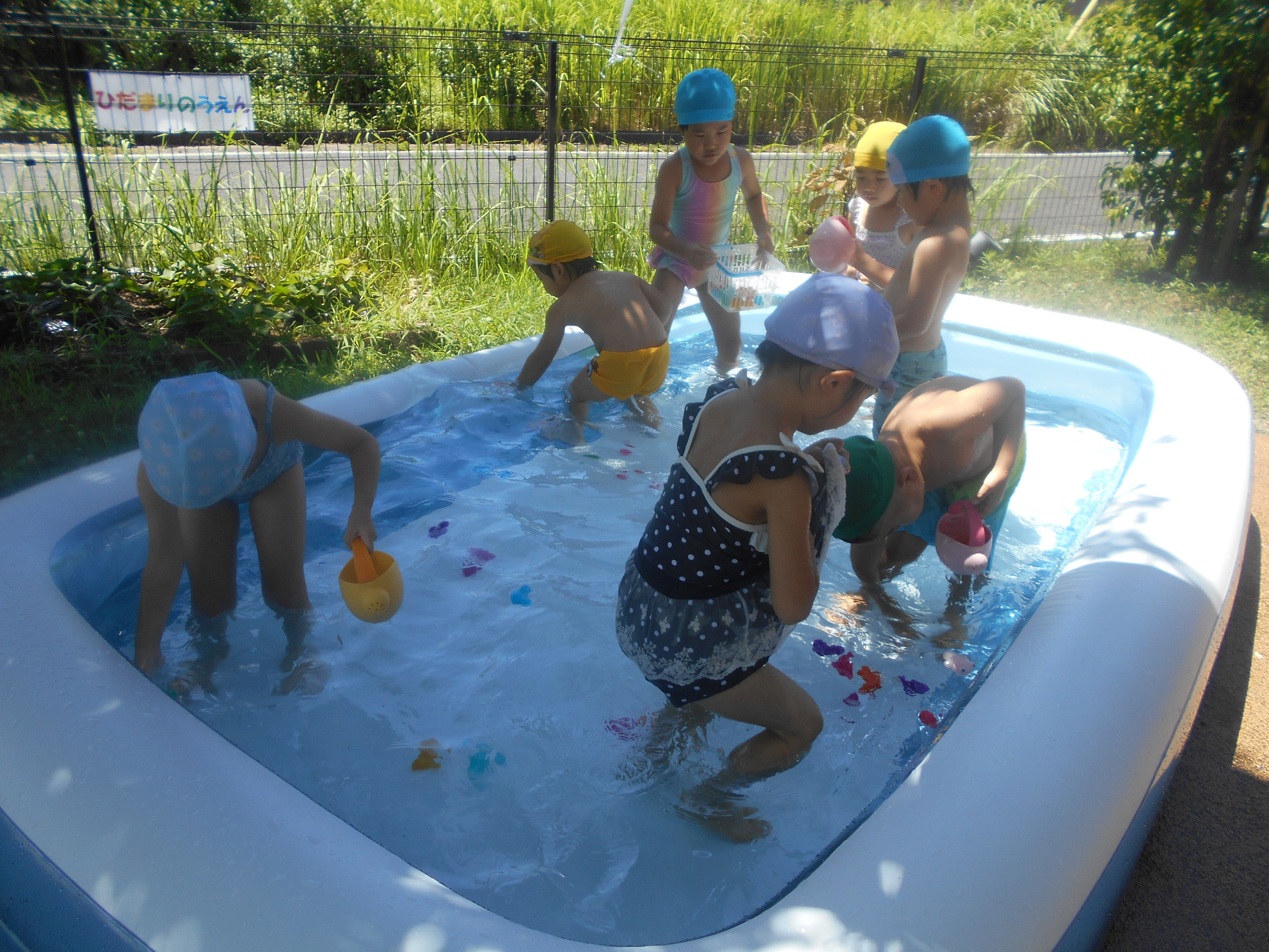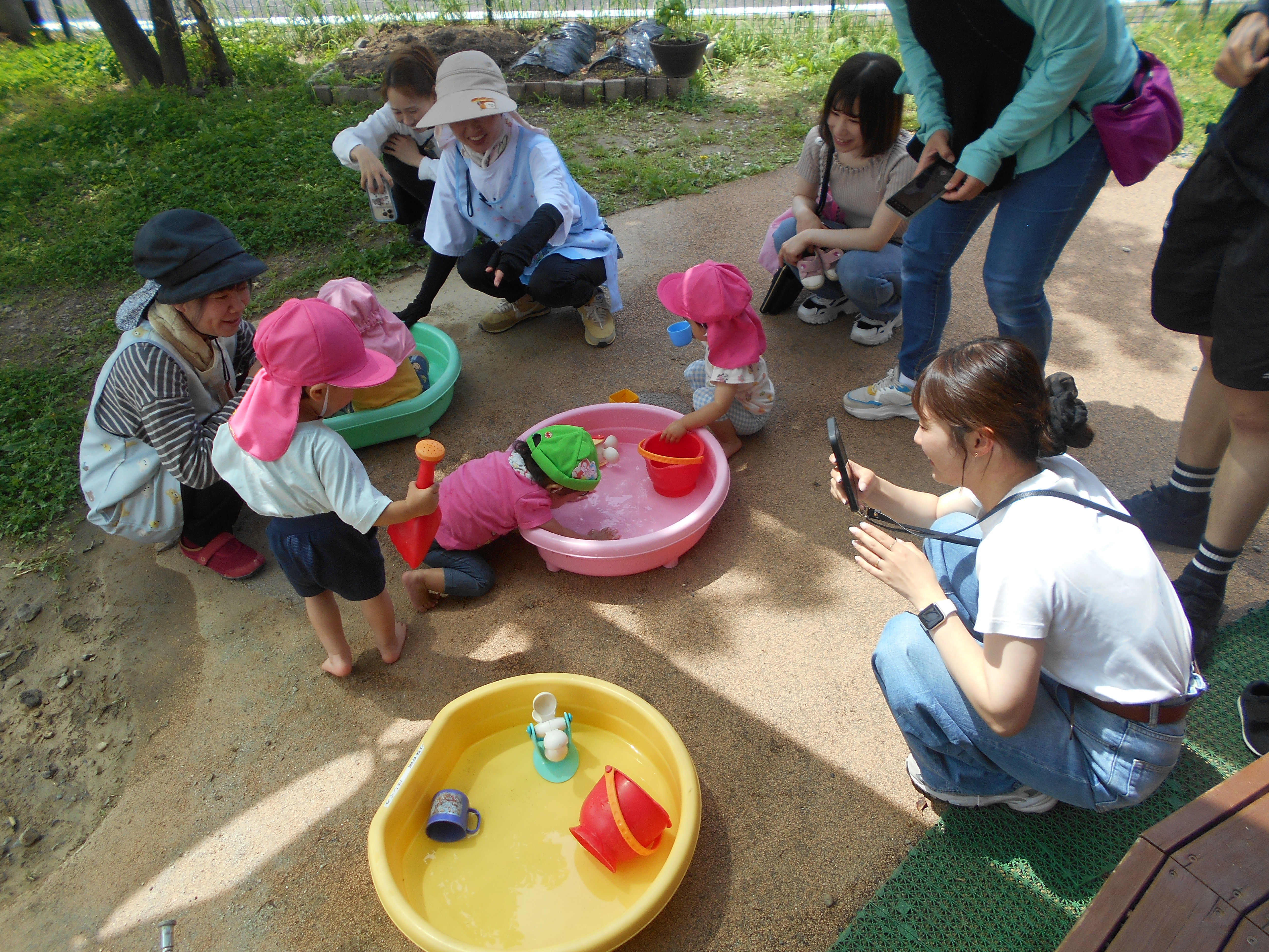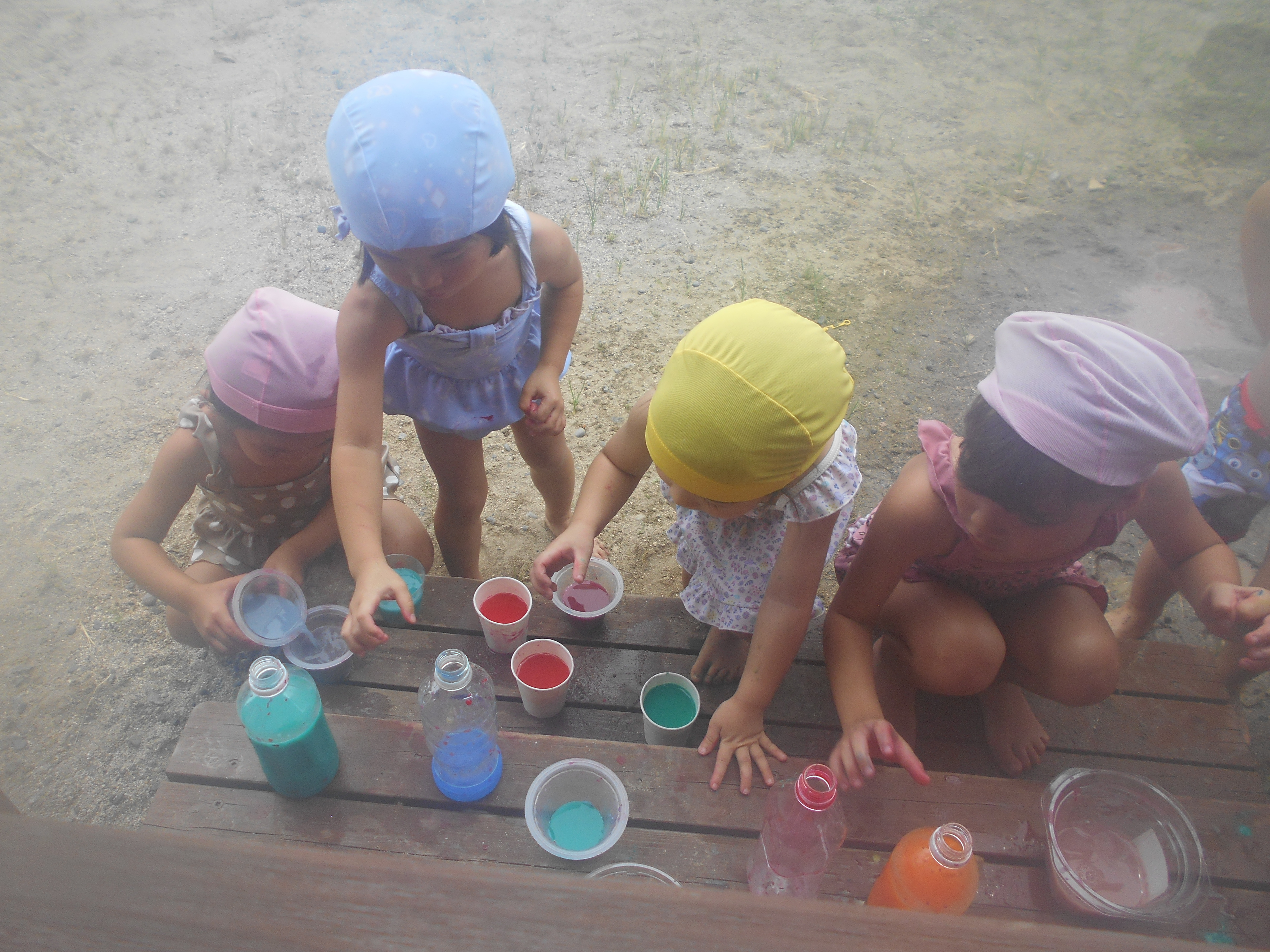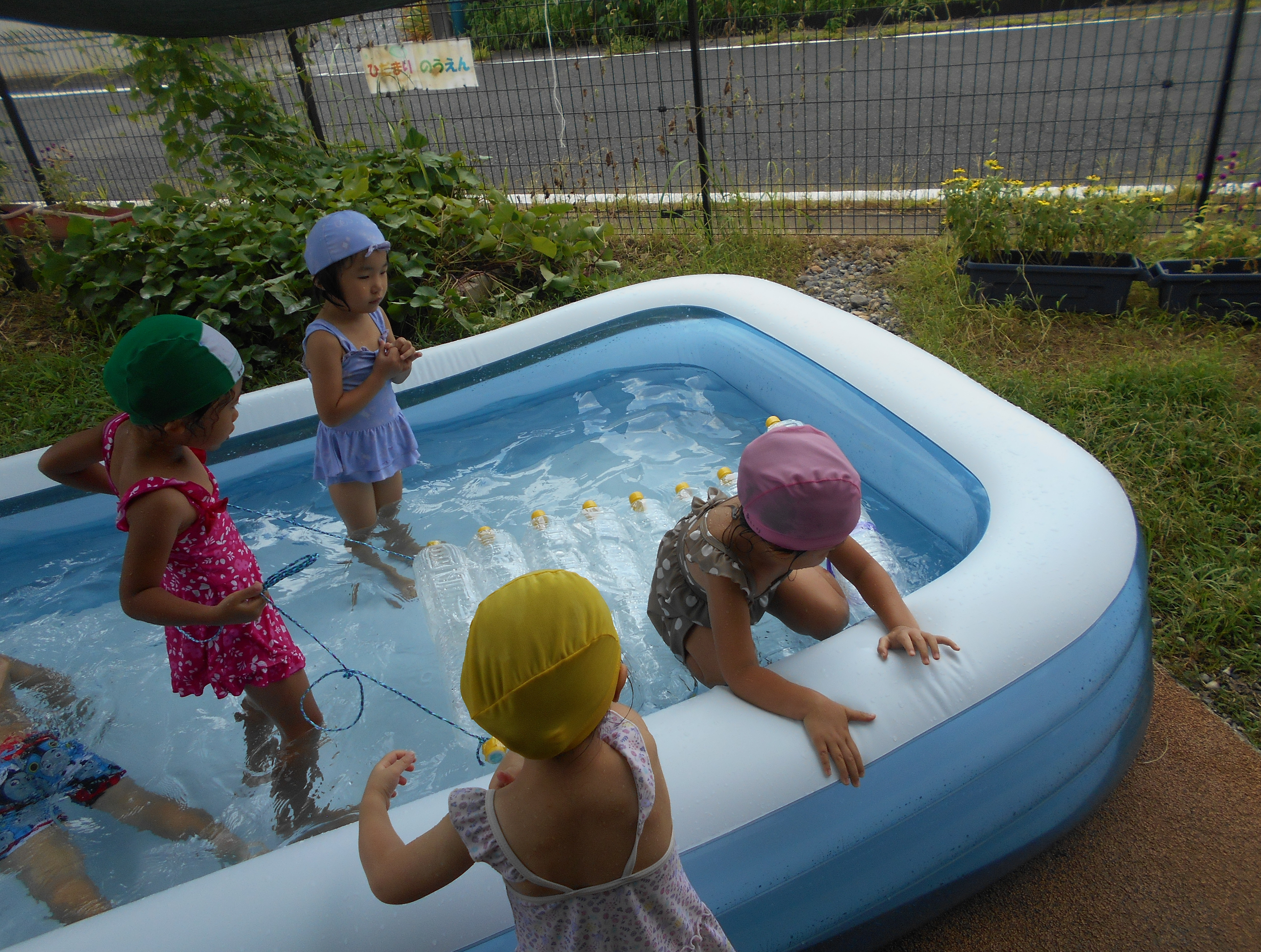 ほし・つき組水遊び、泥んこ遊びを楽しんで冷たさや感触を味わったほし・つき組のお友だち😊 |