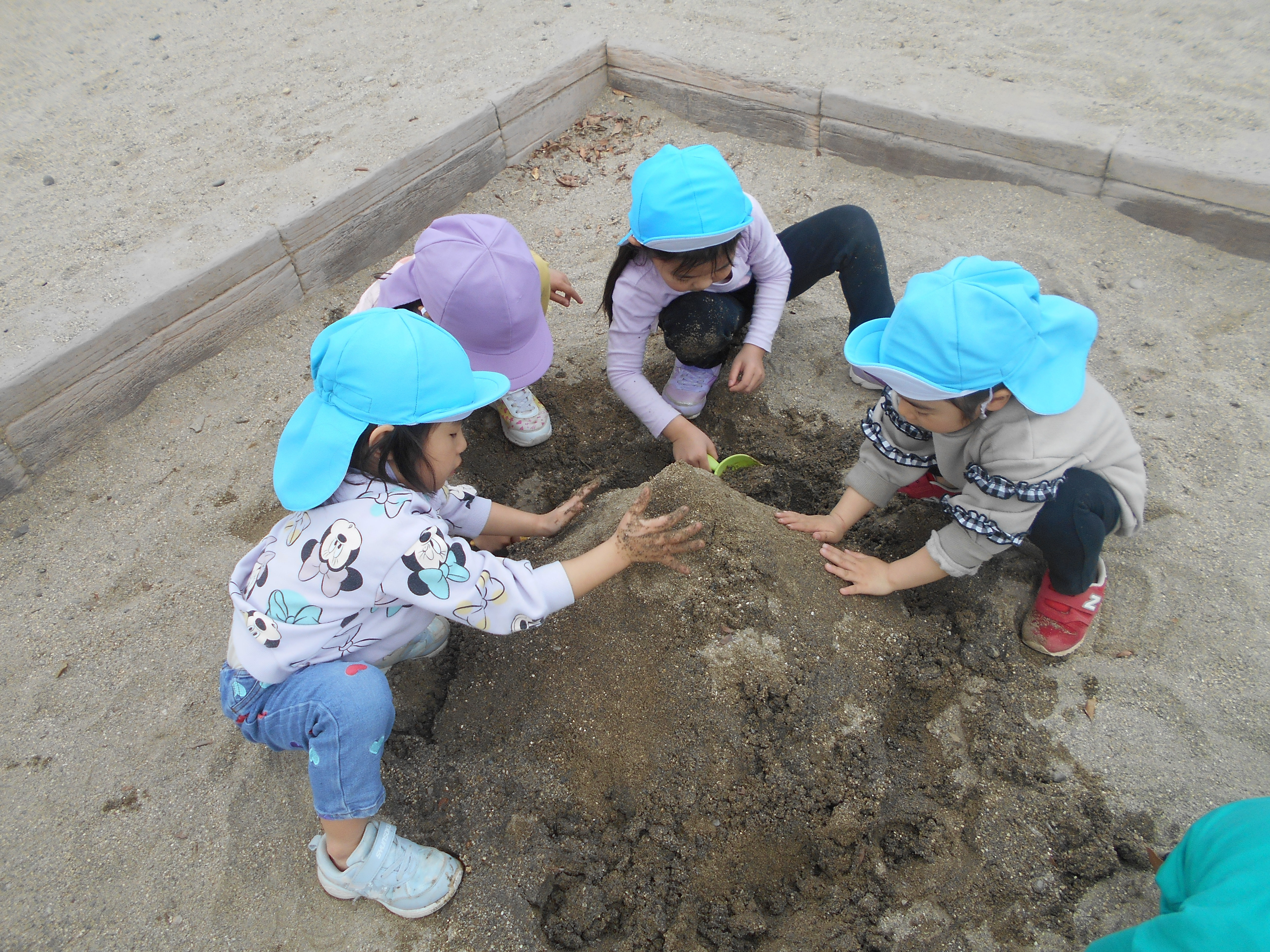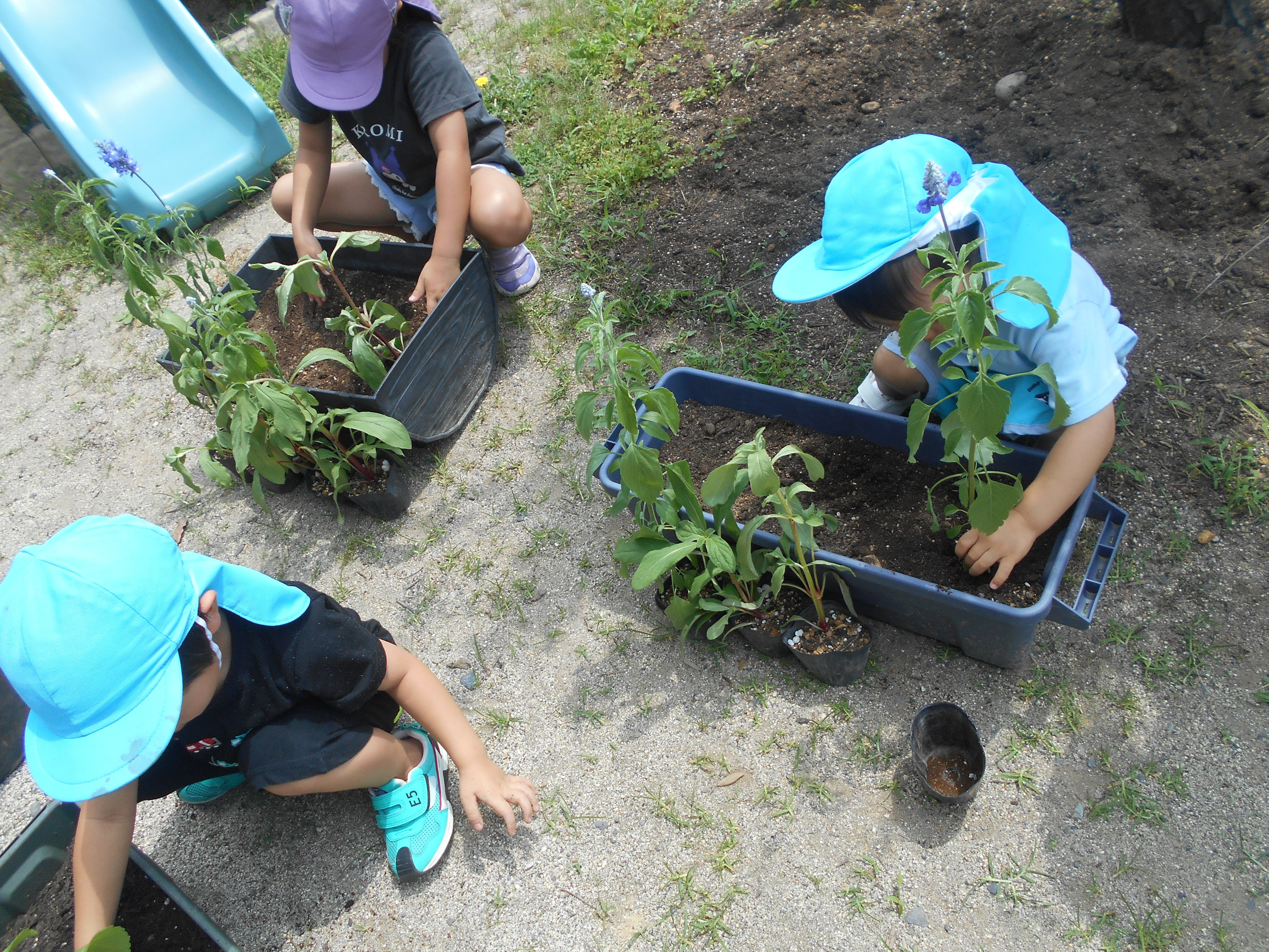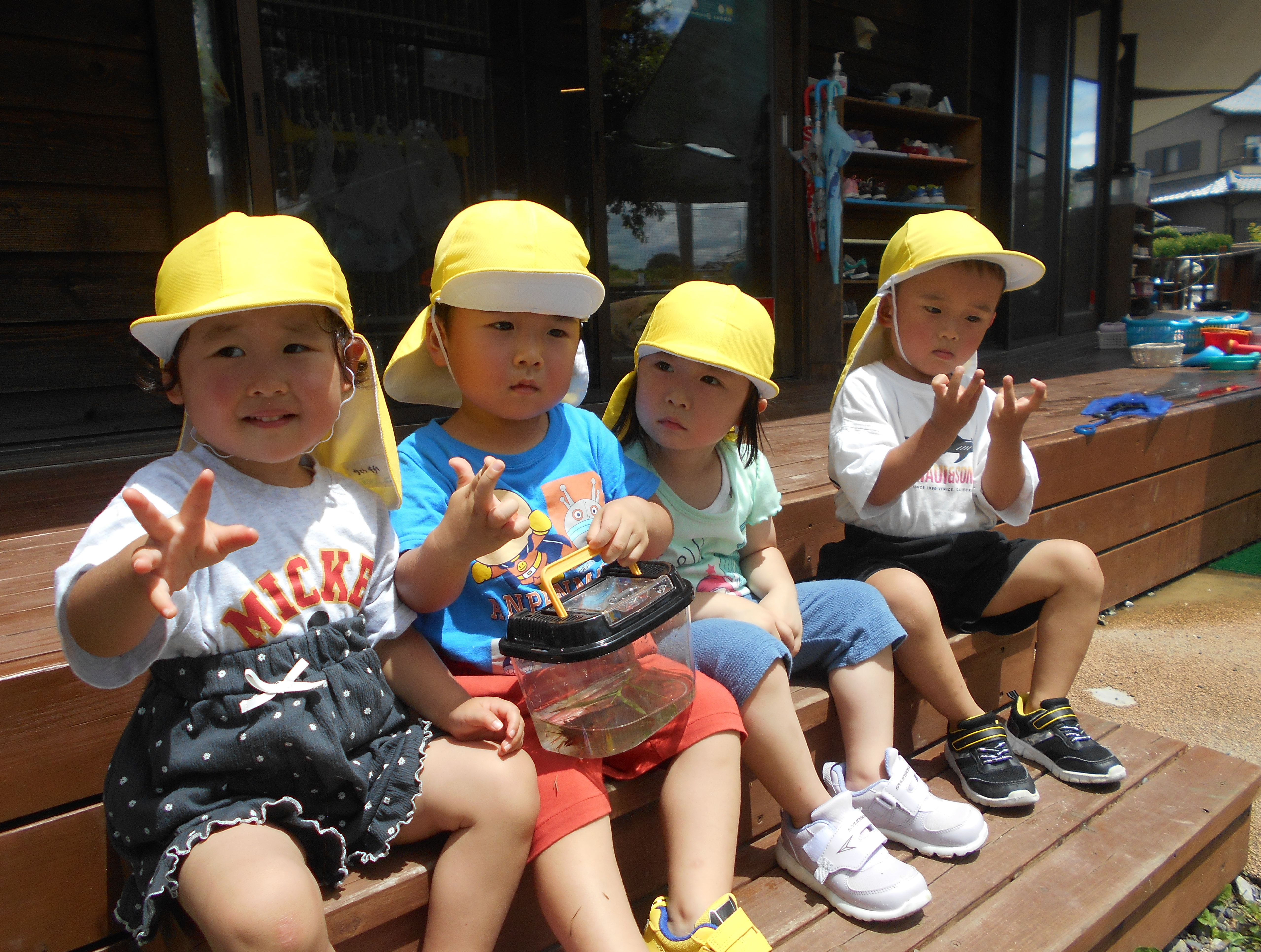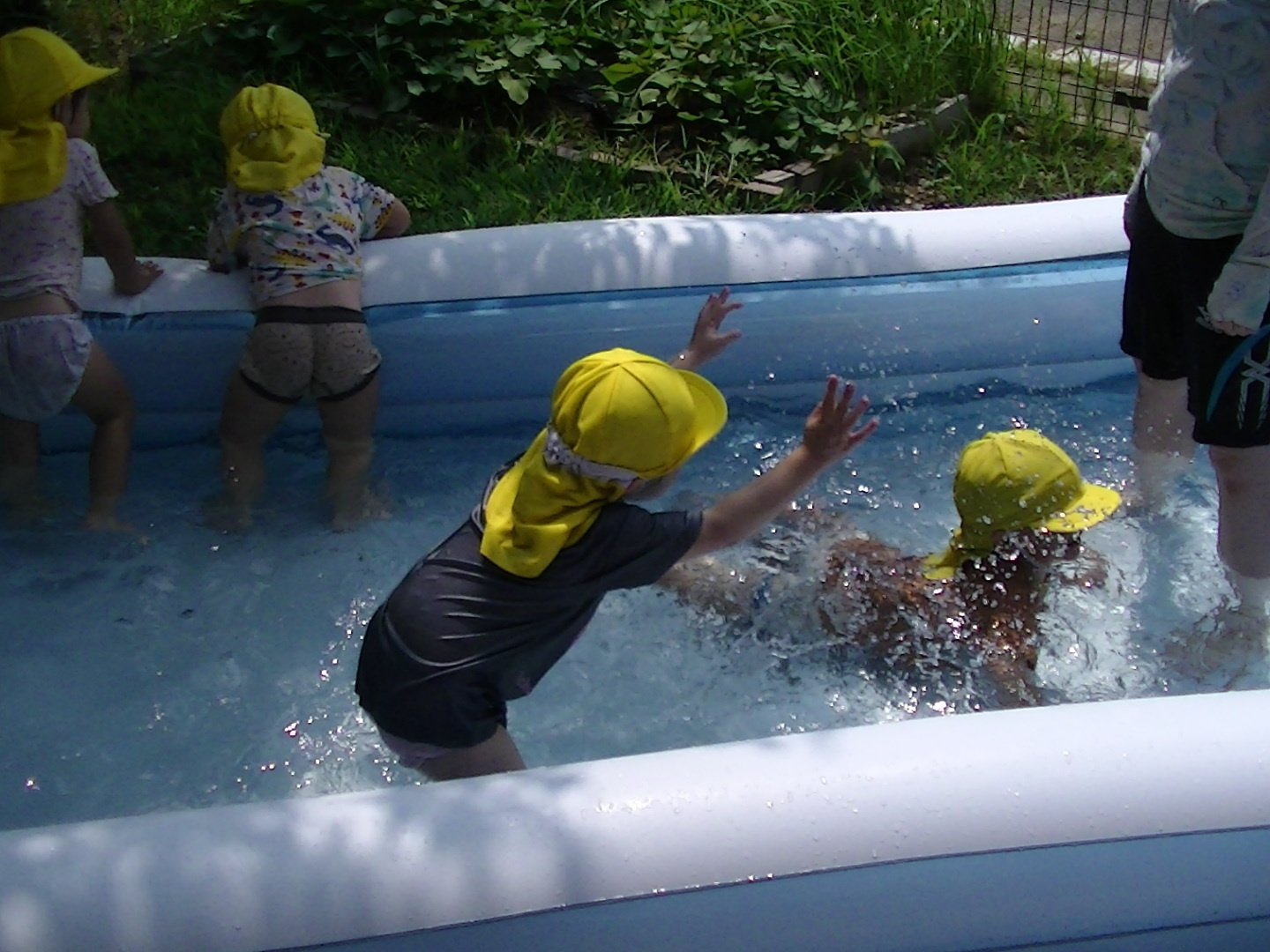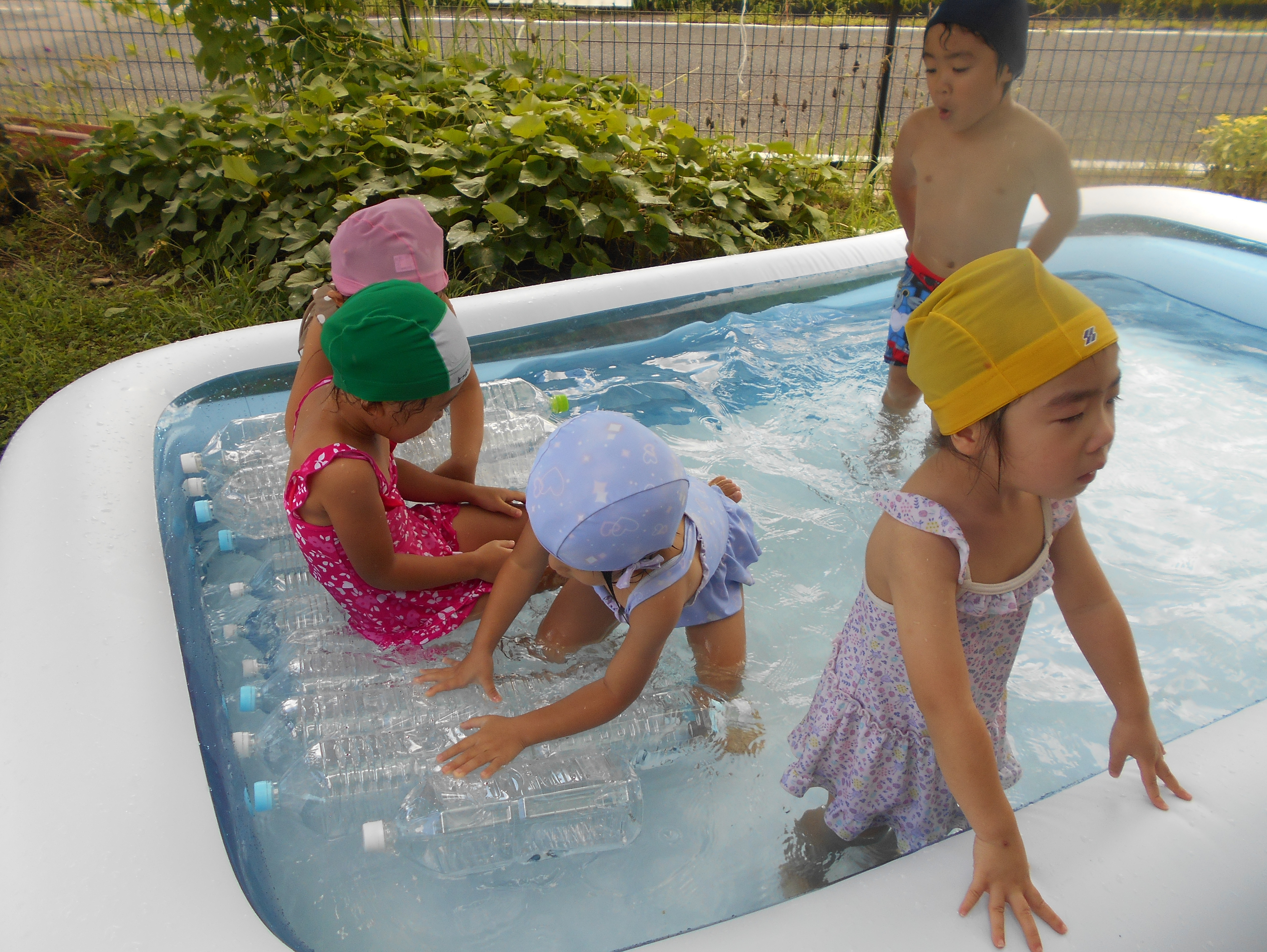 ほし・つき組水遊び、泥んこ遊びを楽しんで冷たさや感触を味わったほし・つき組のお友だち😊 |