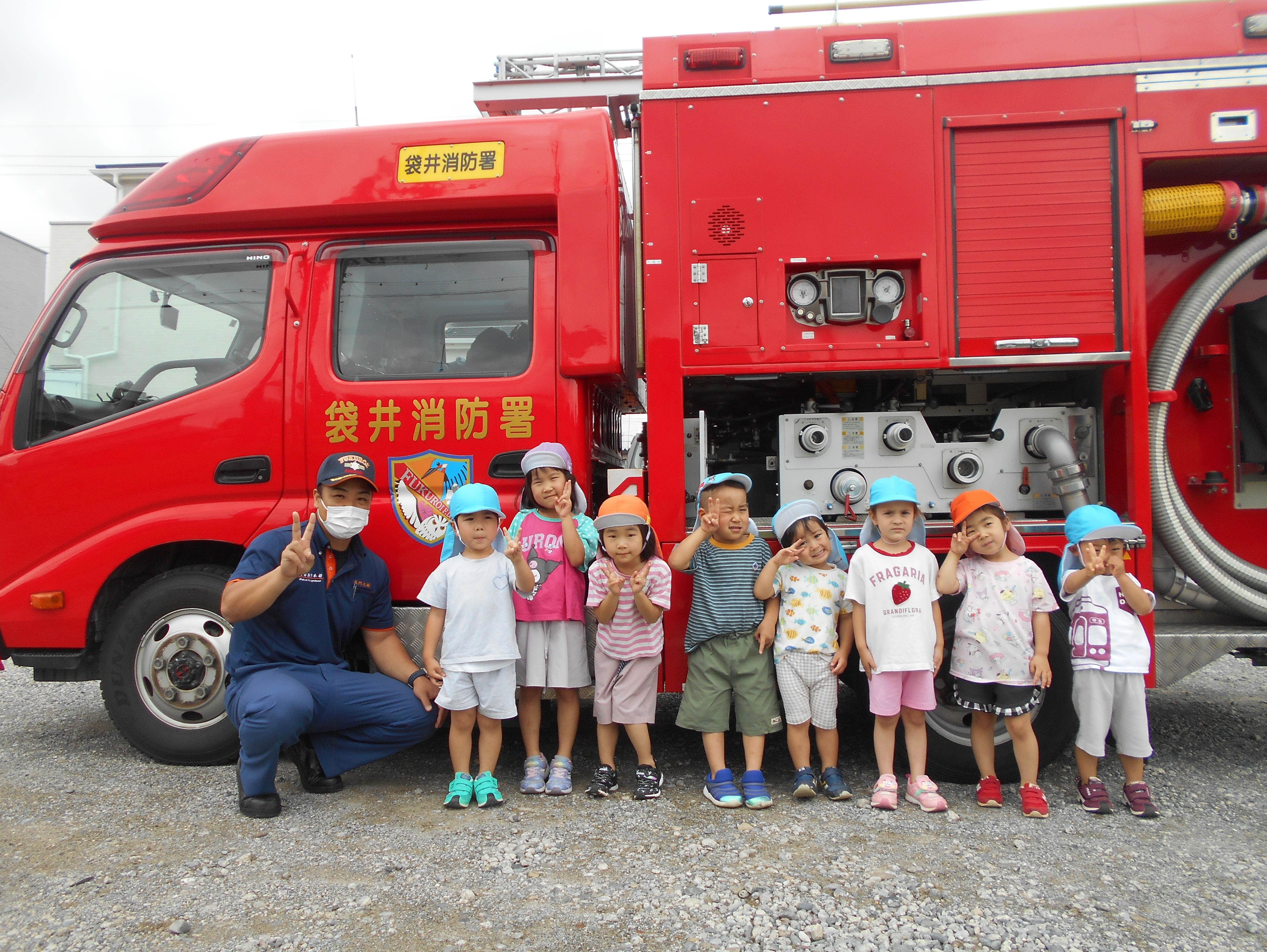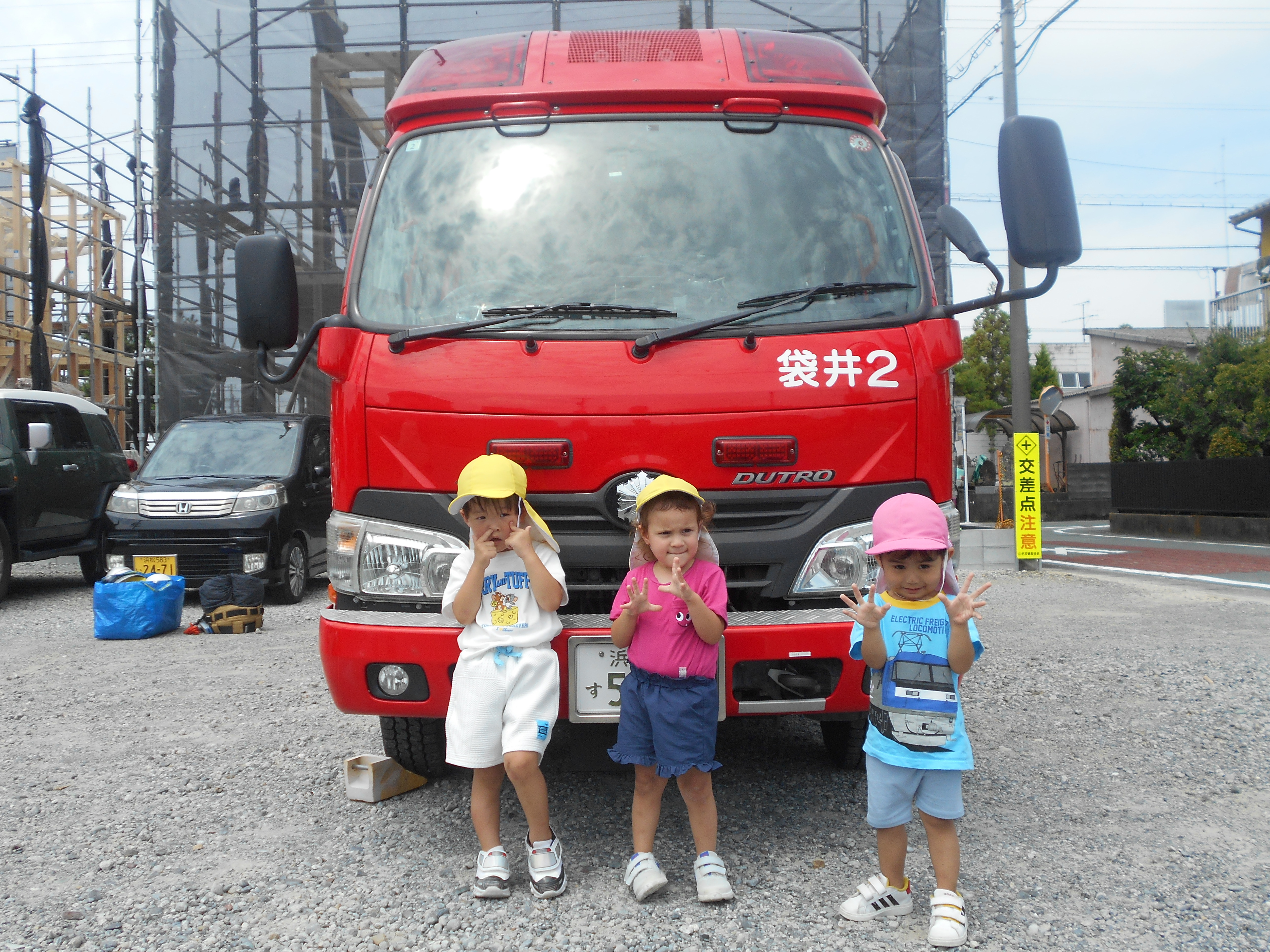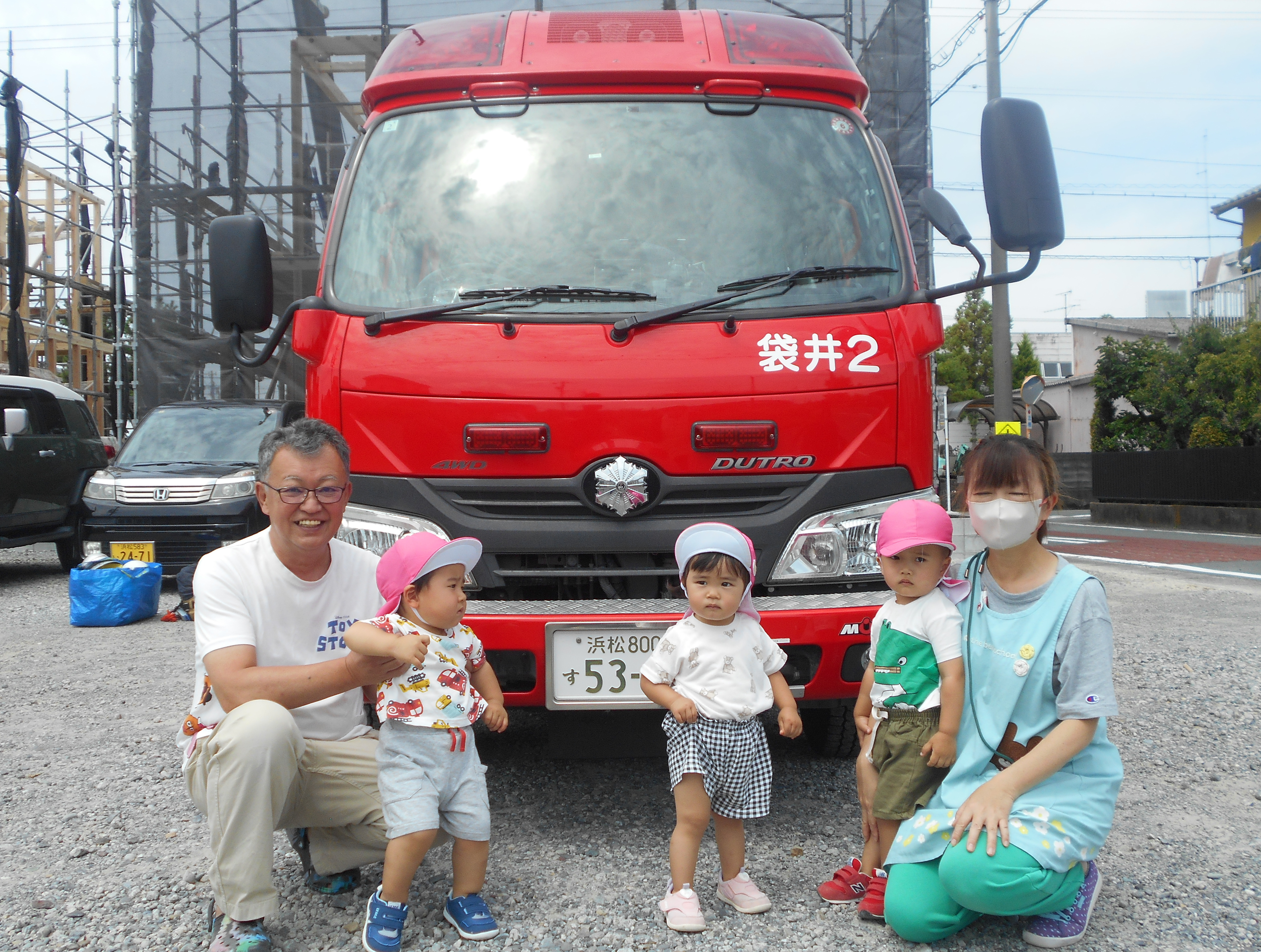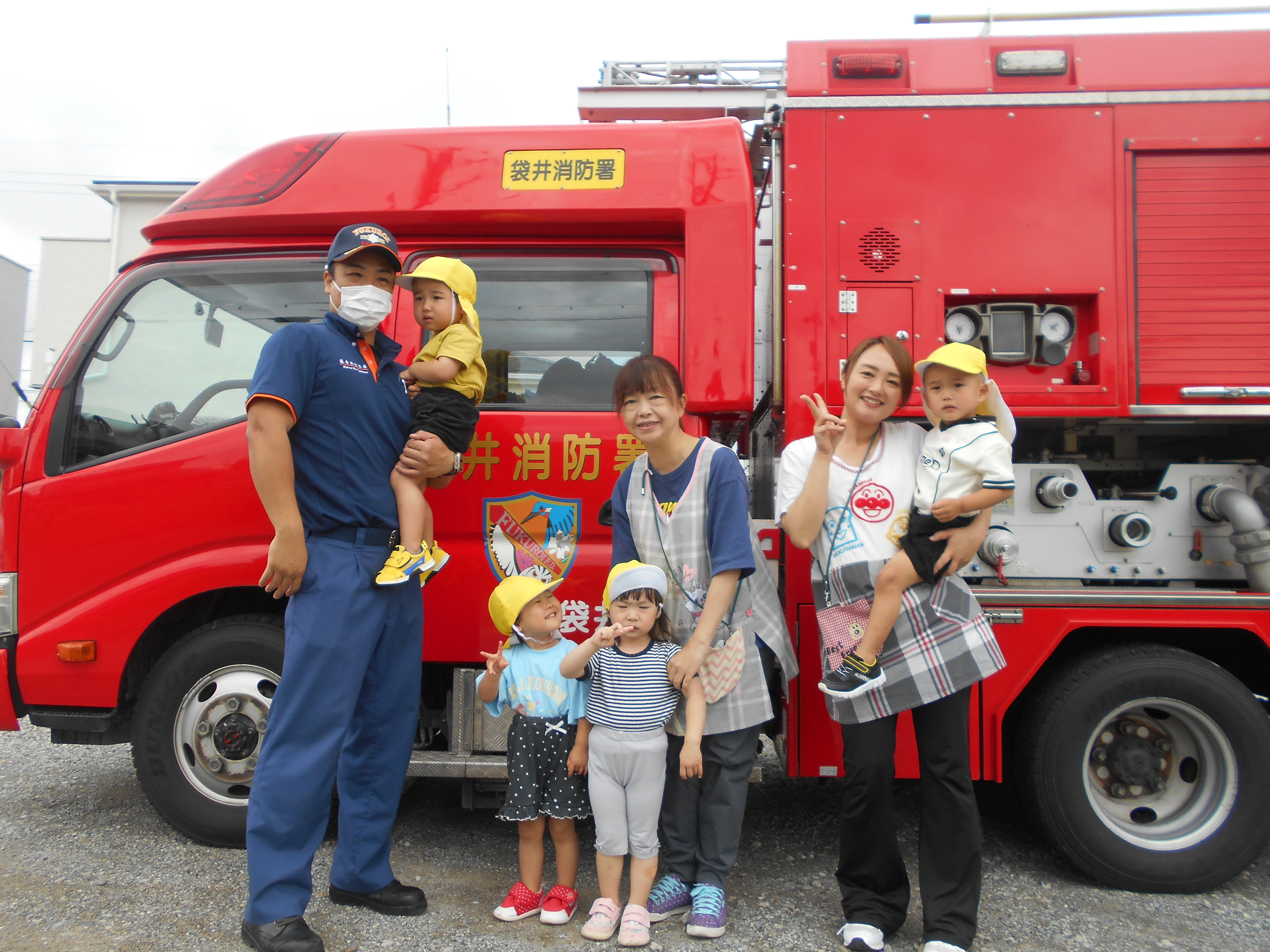 防火・花火教室消防車🚒と記念写真!にじ組さんは乗せてもらったよ! |