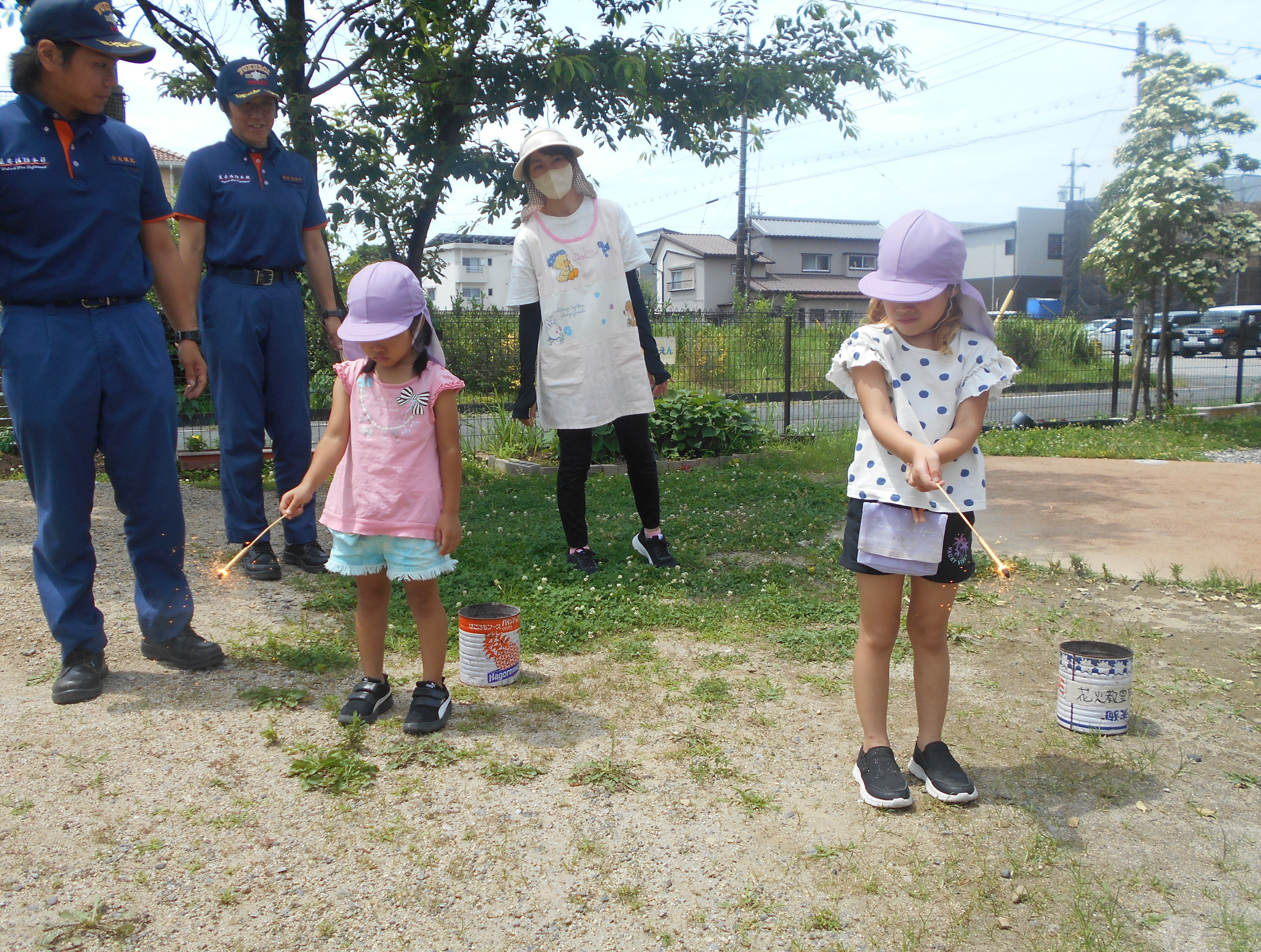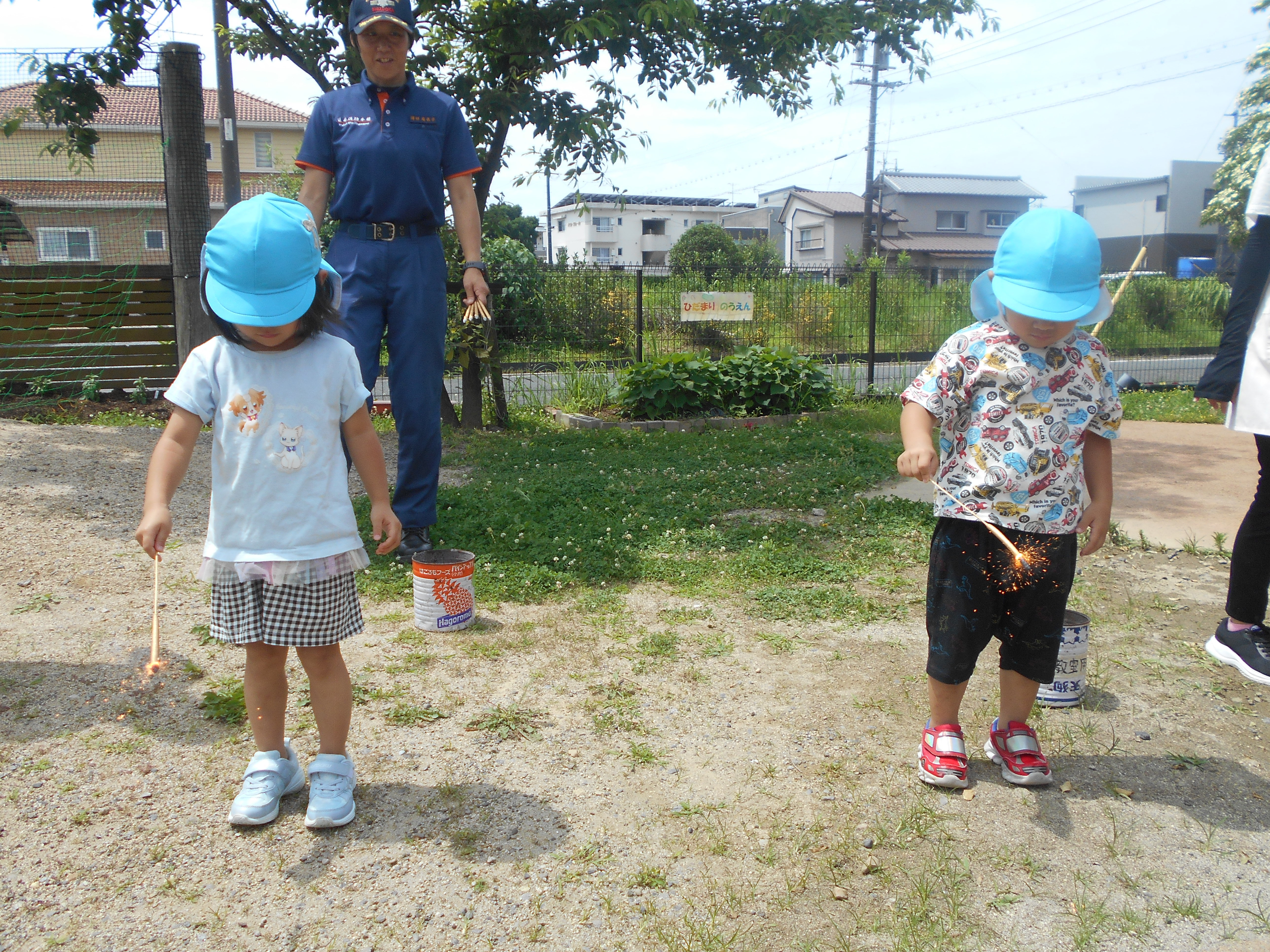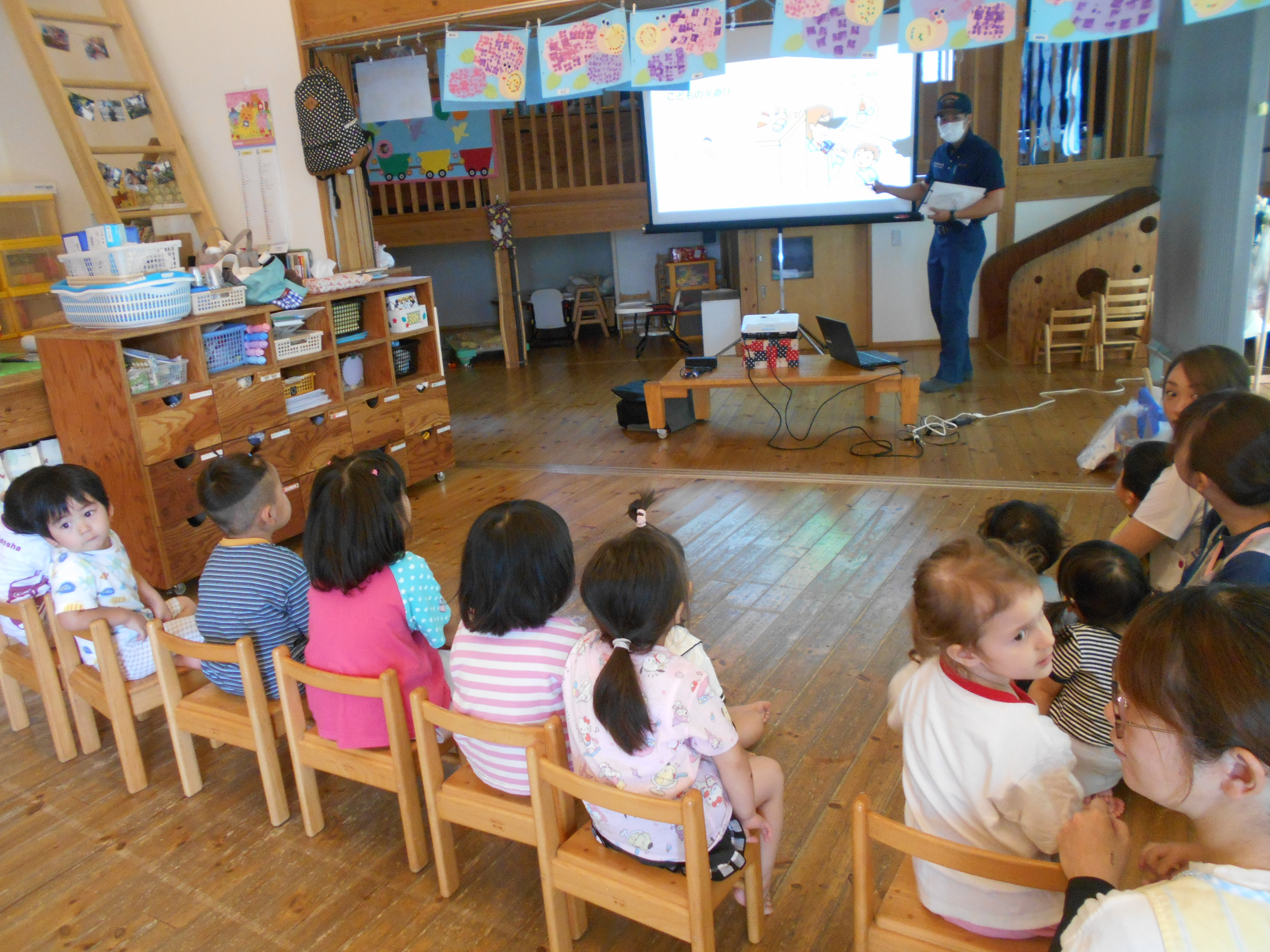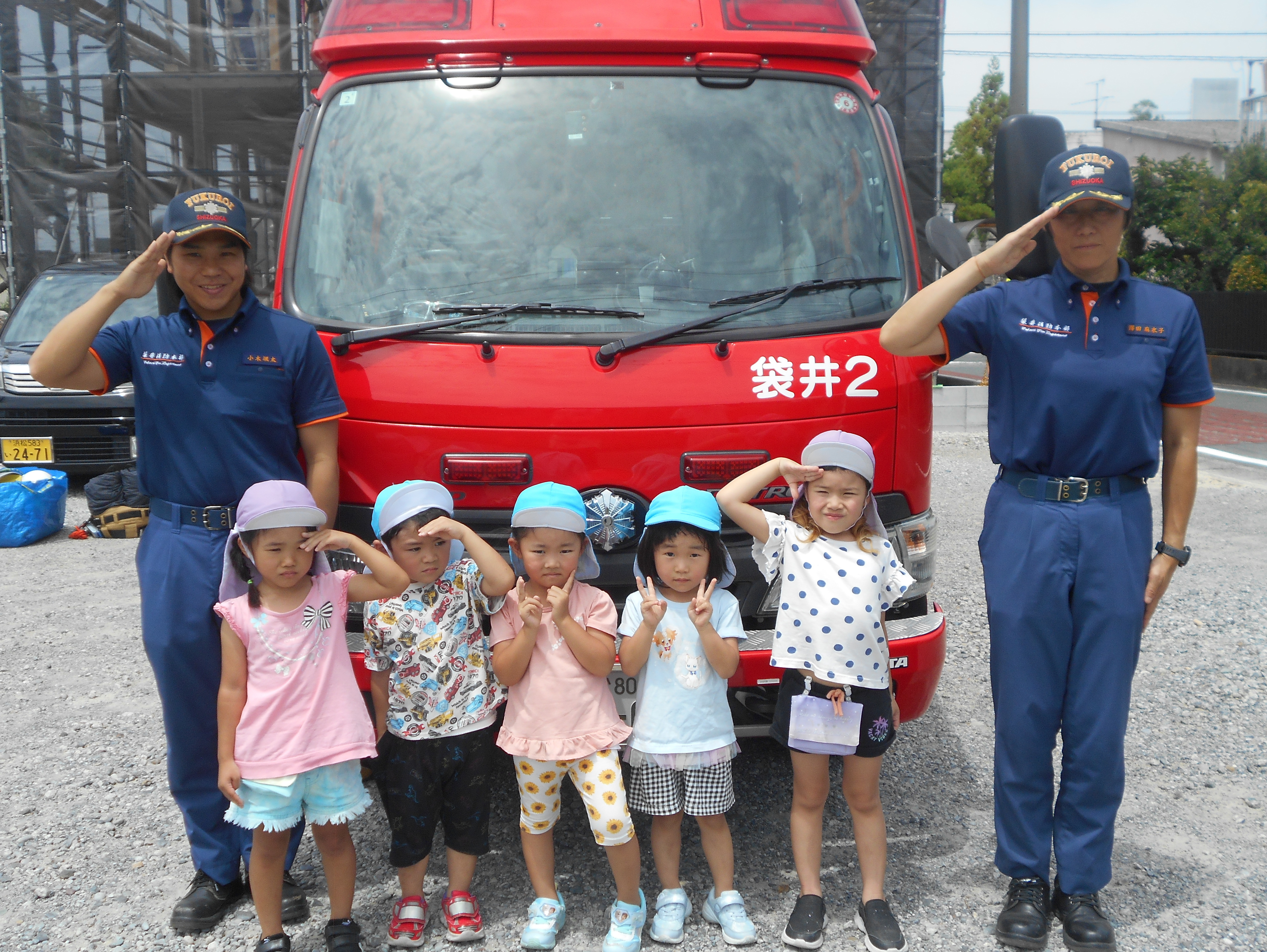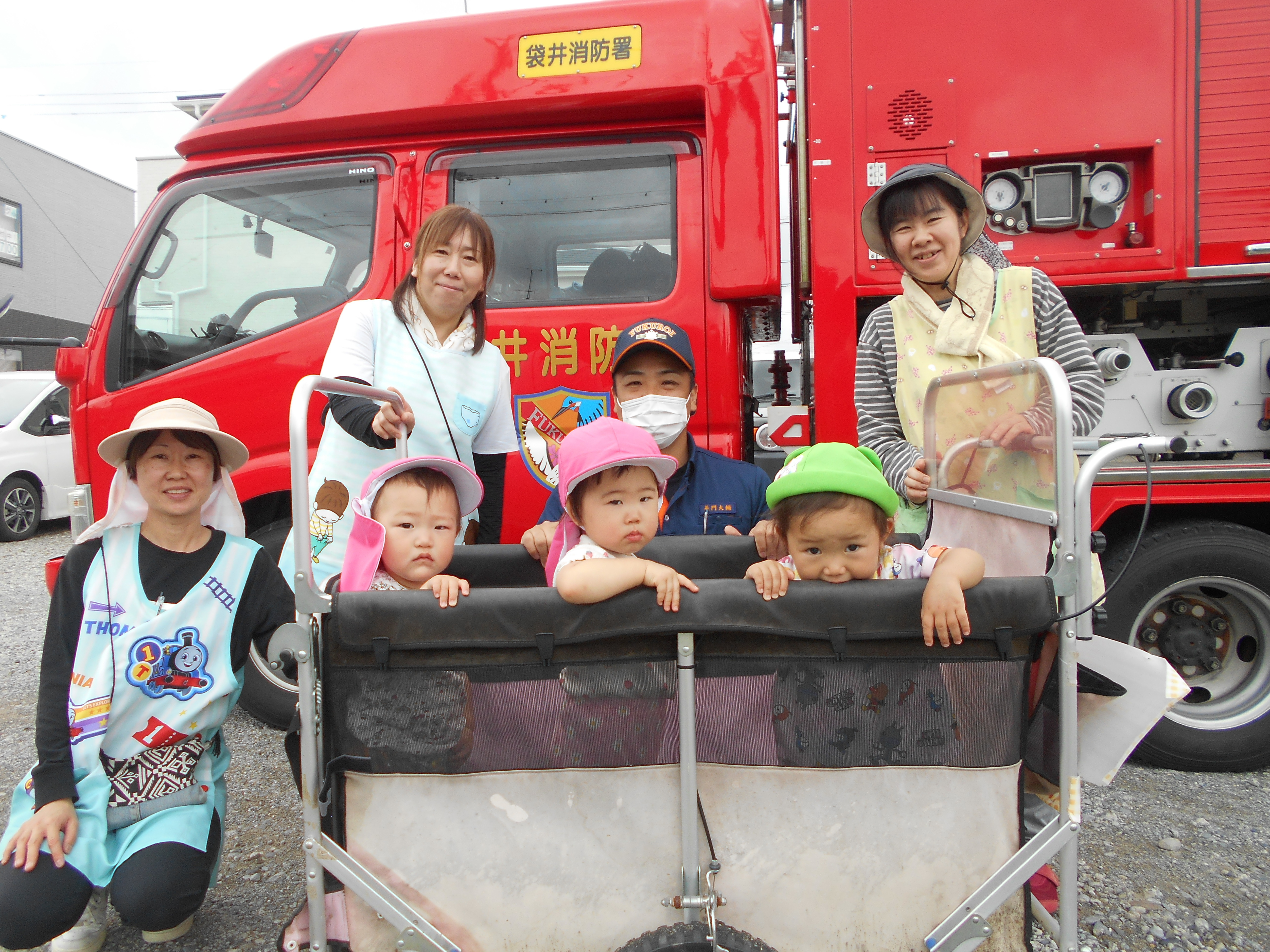 防火・花火教室消防車🚒と記念写真!にじ組さんは乗せてもらったよ! |