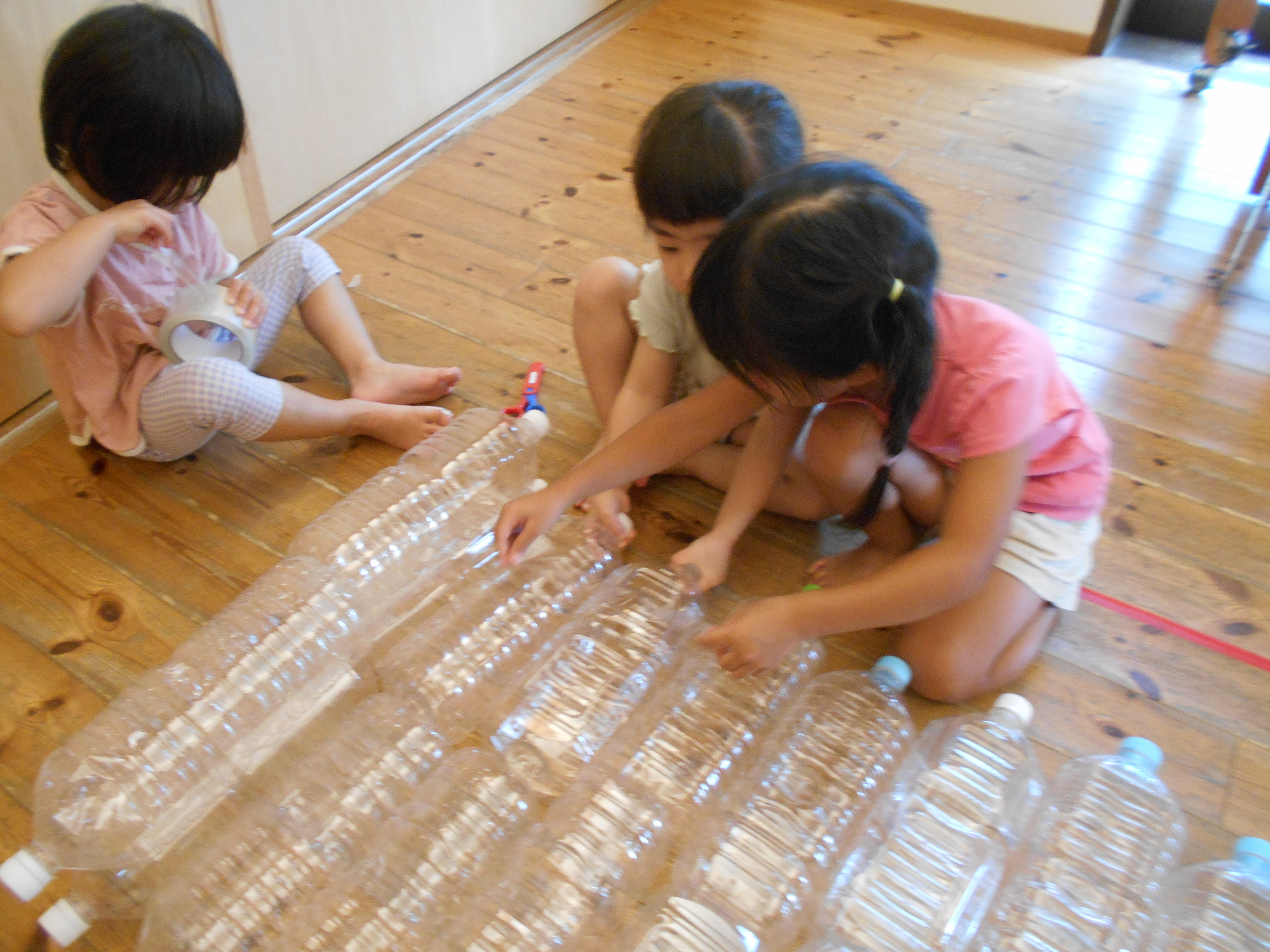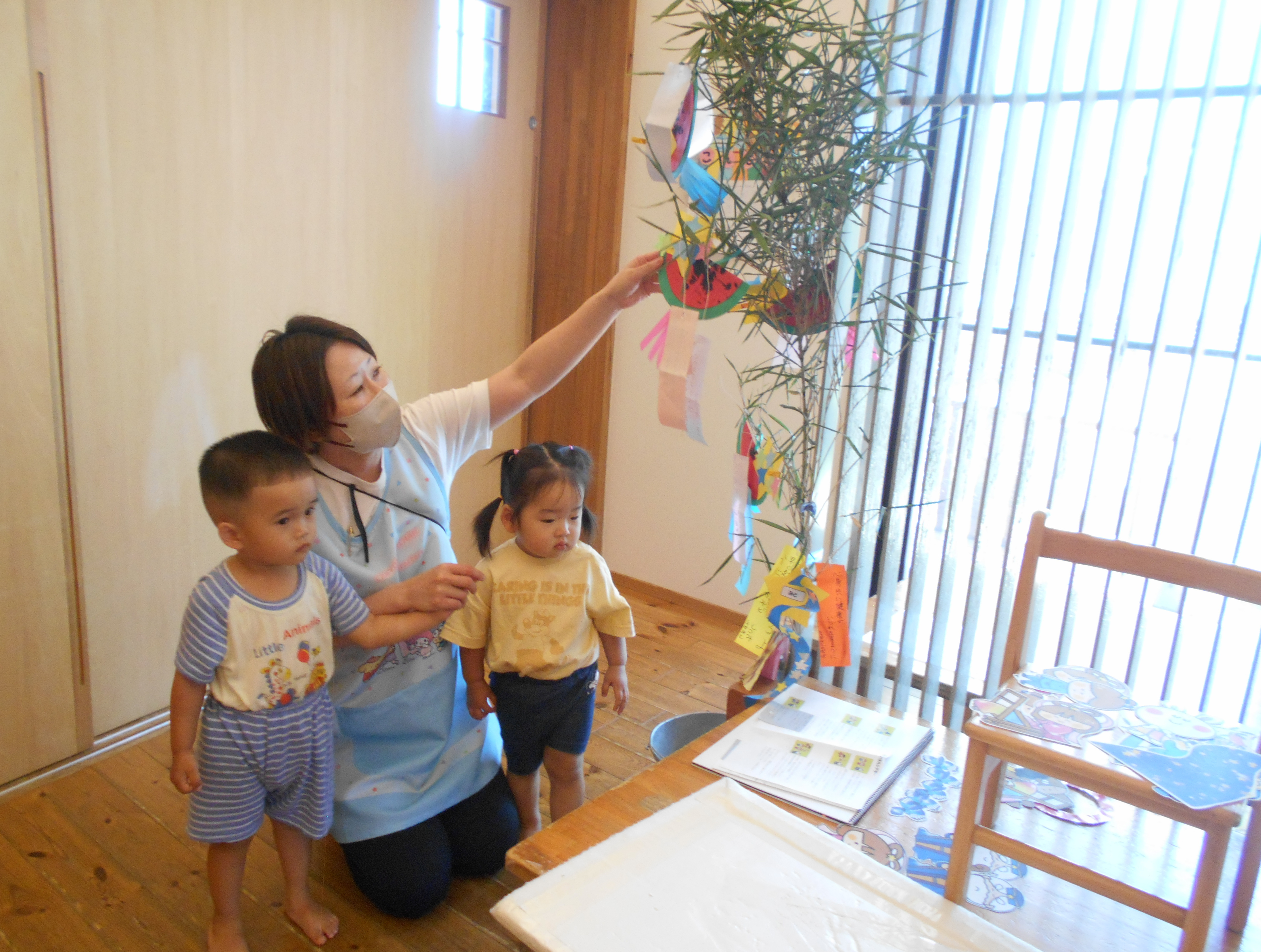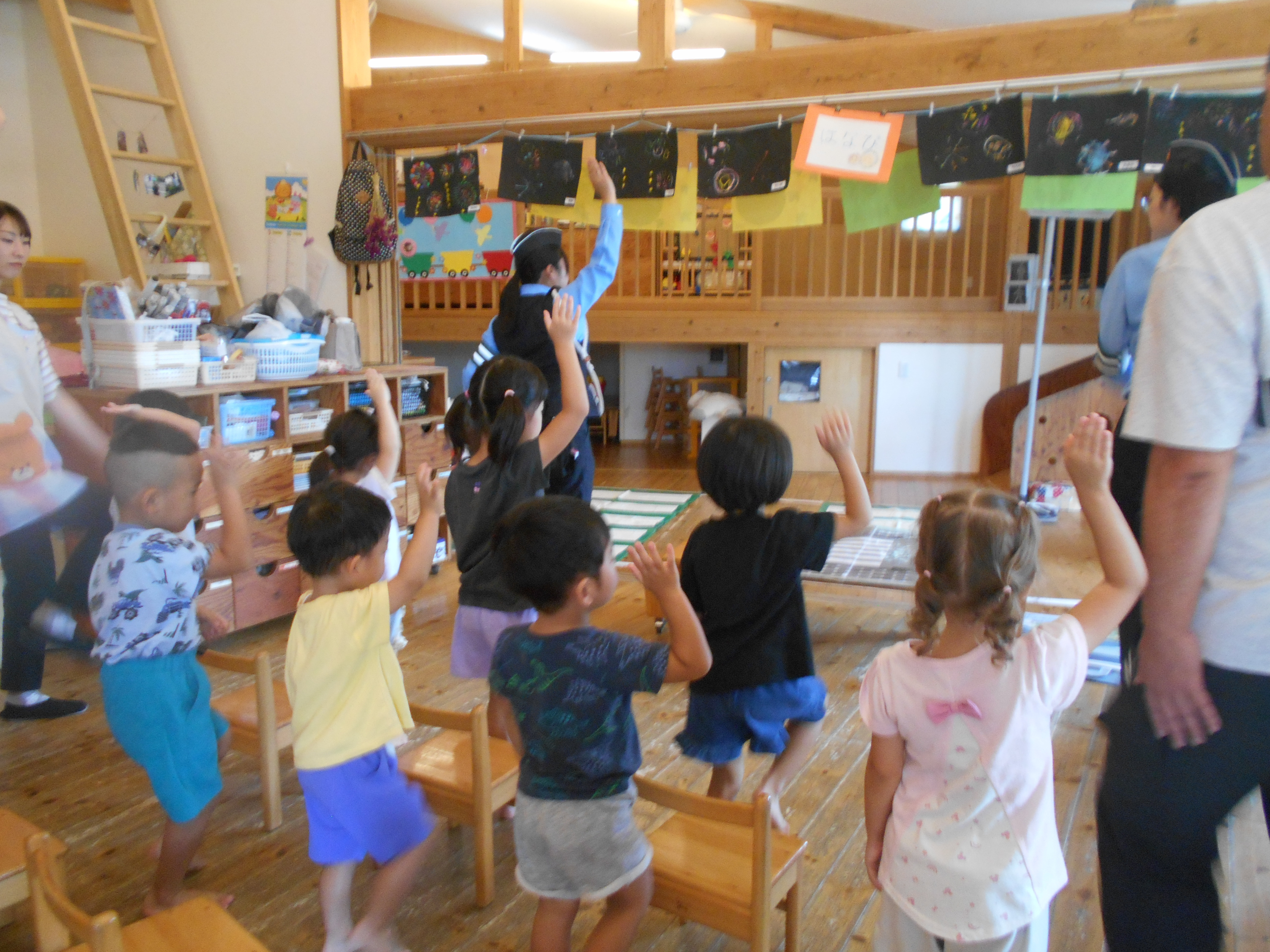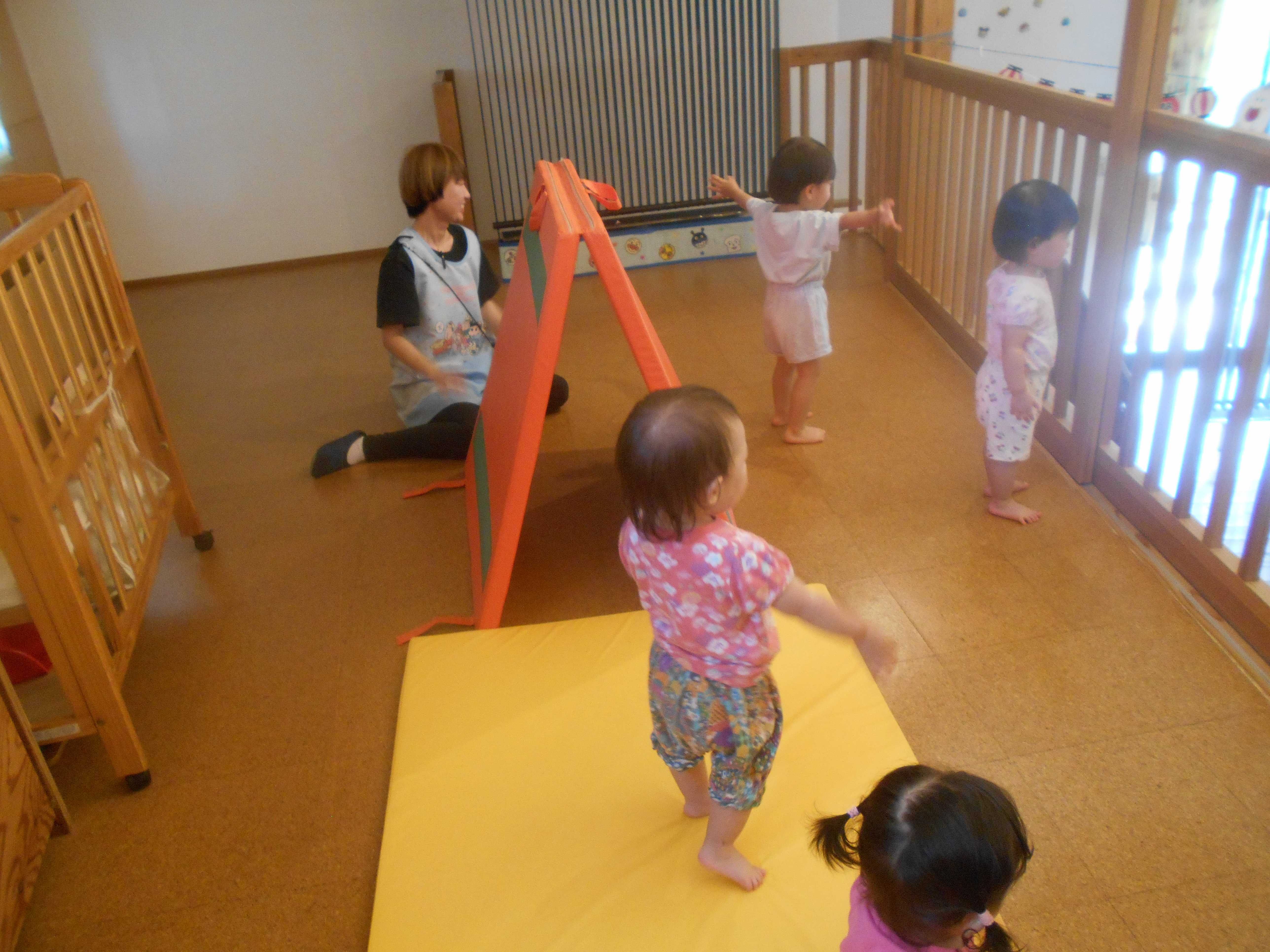 ほしつき暑い日が続いていますが、室内でもマット遊びや製作をして楽しく過ごしています。 |