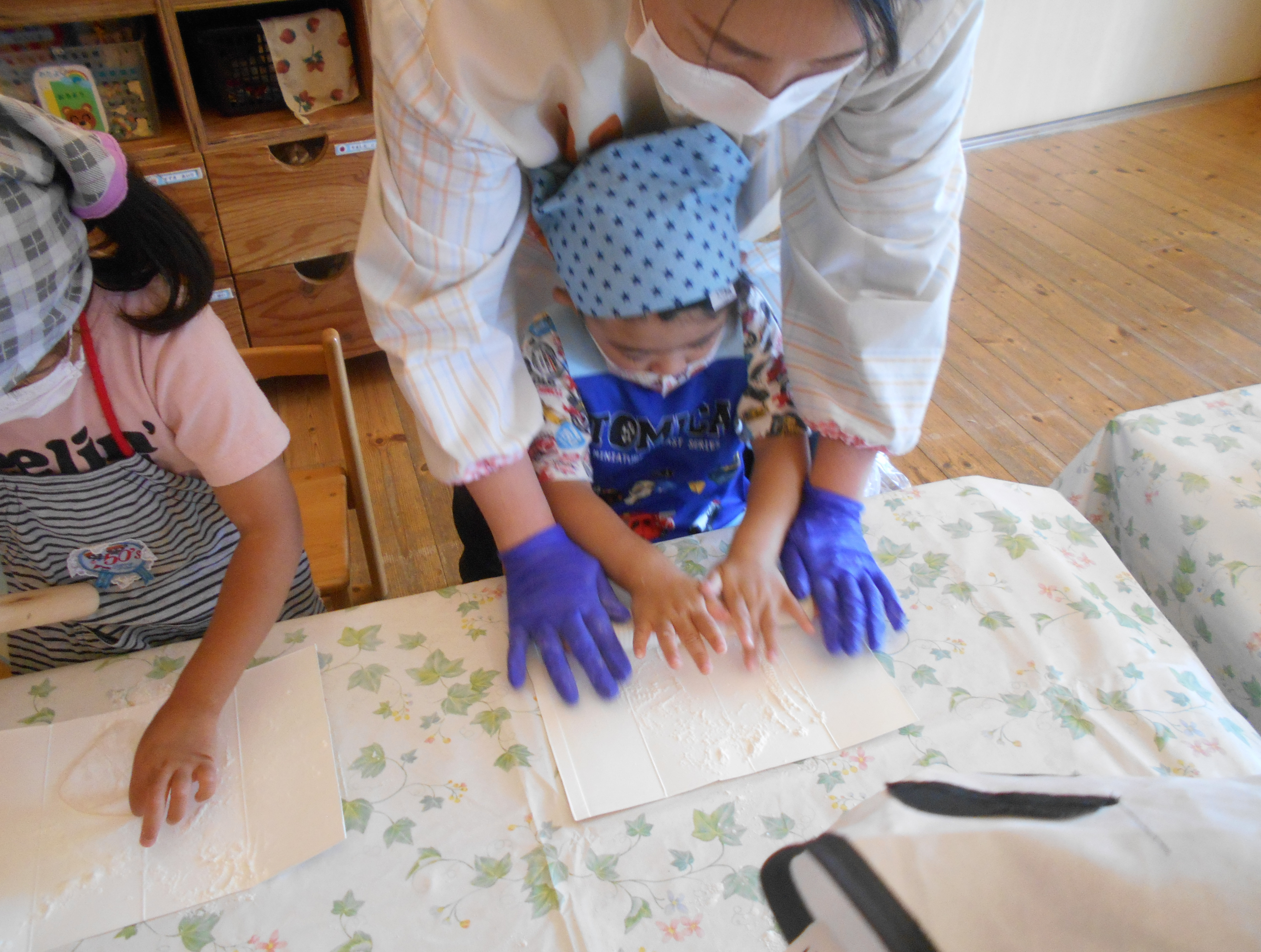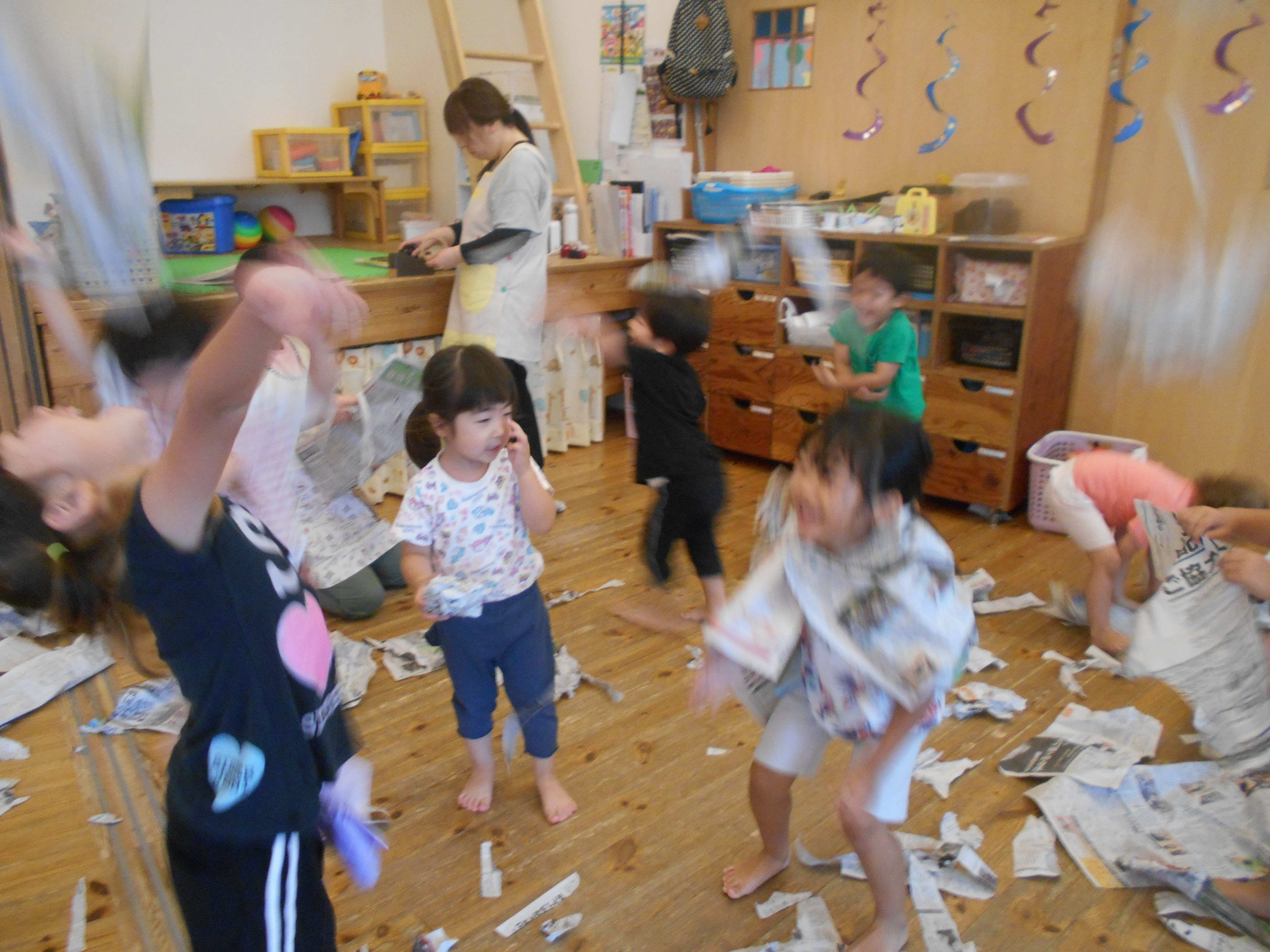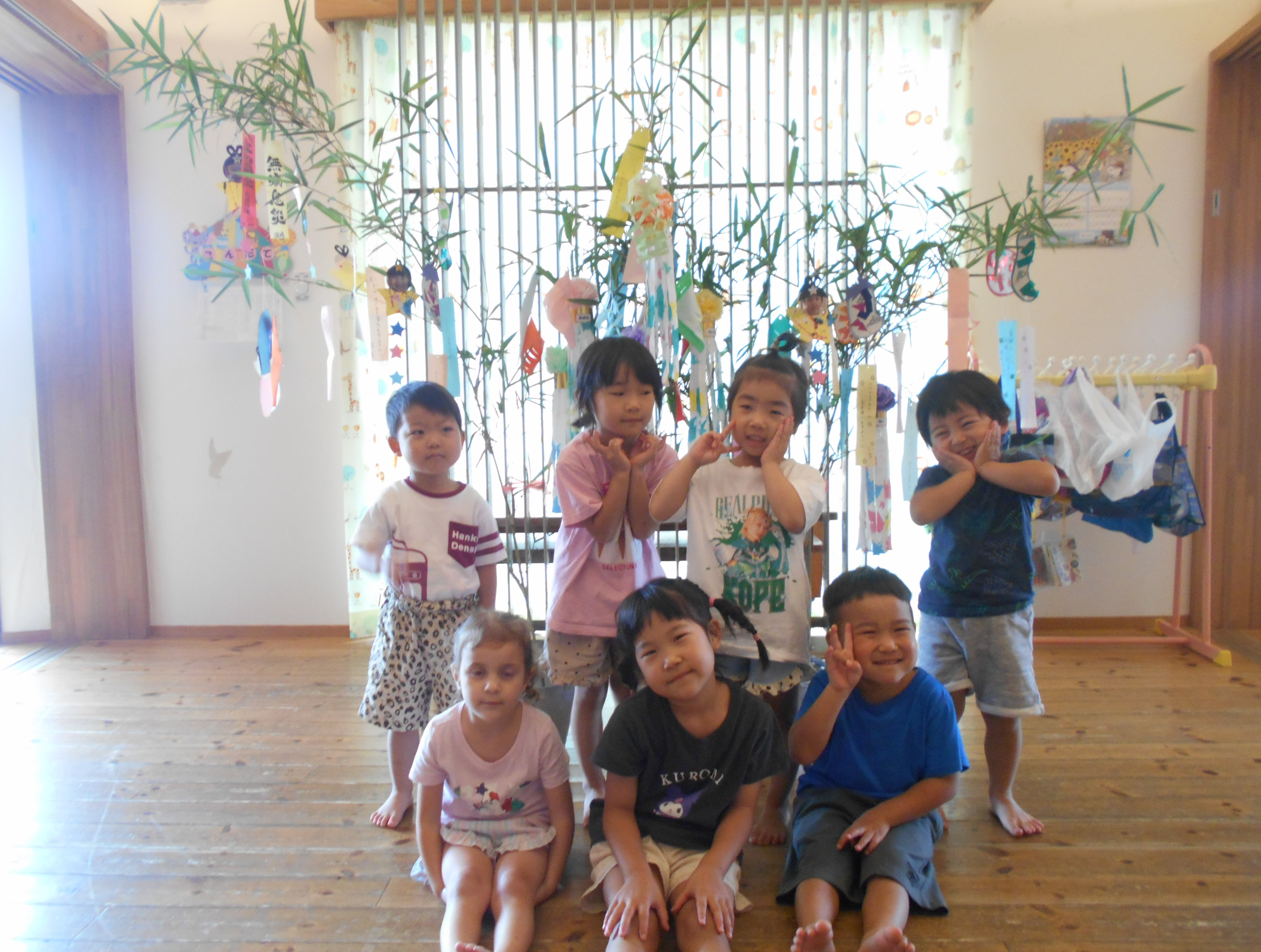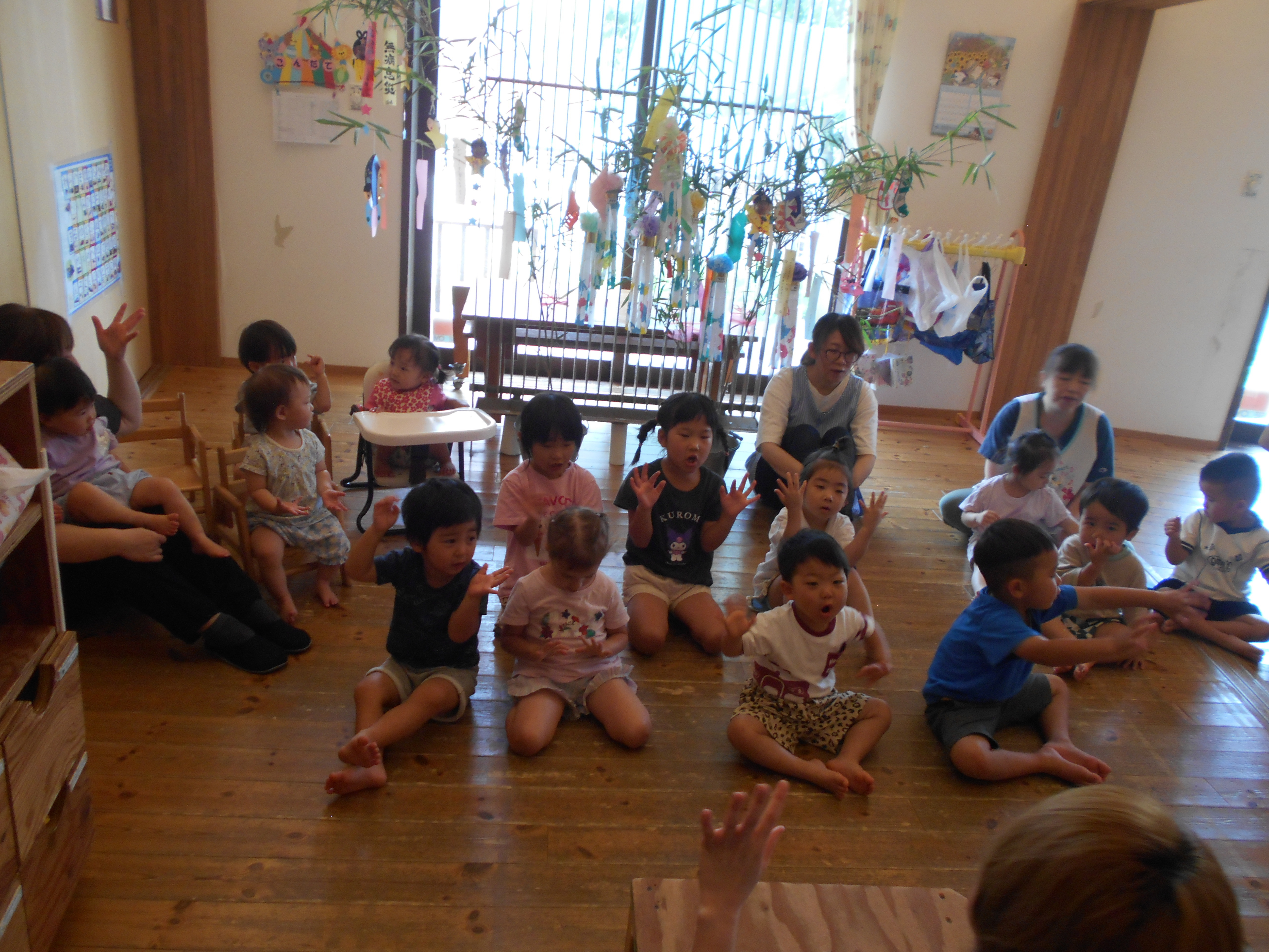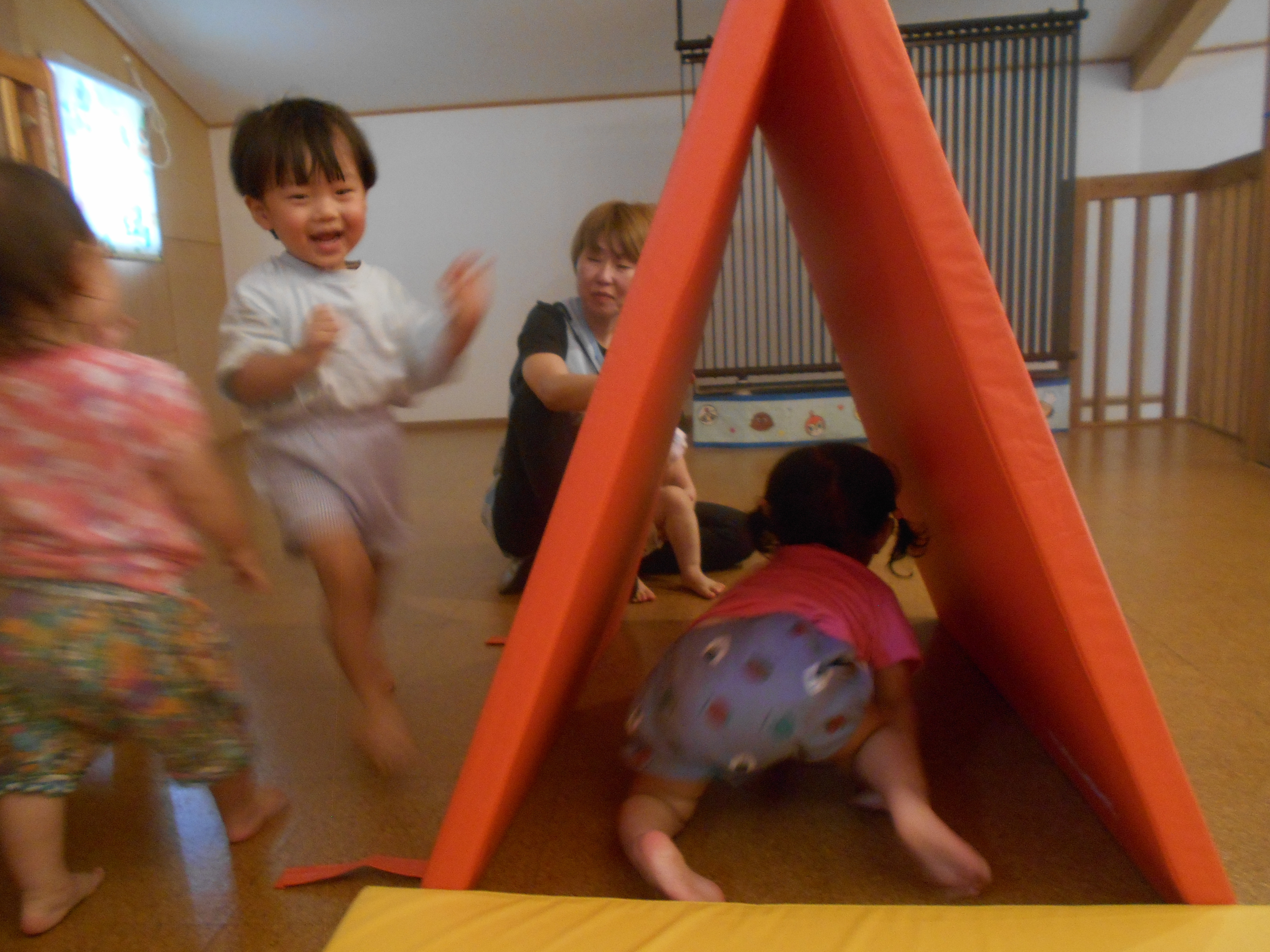 ほしつき暑い日が続いていますが、室内でもマット遊びや製作をして楽しく過ごしています。 |