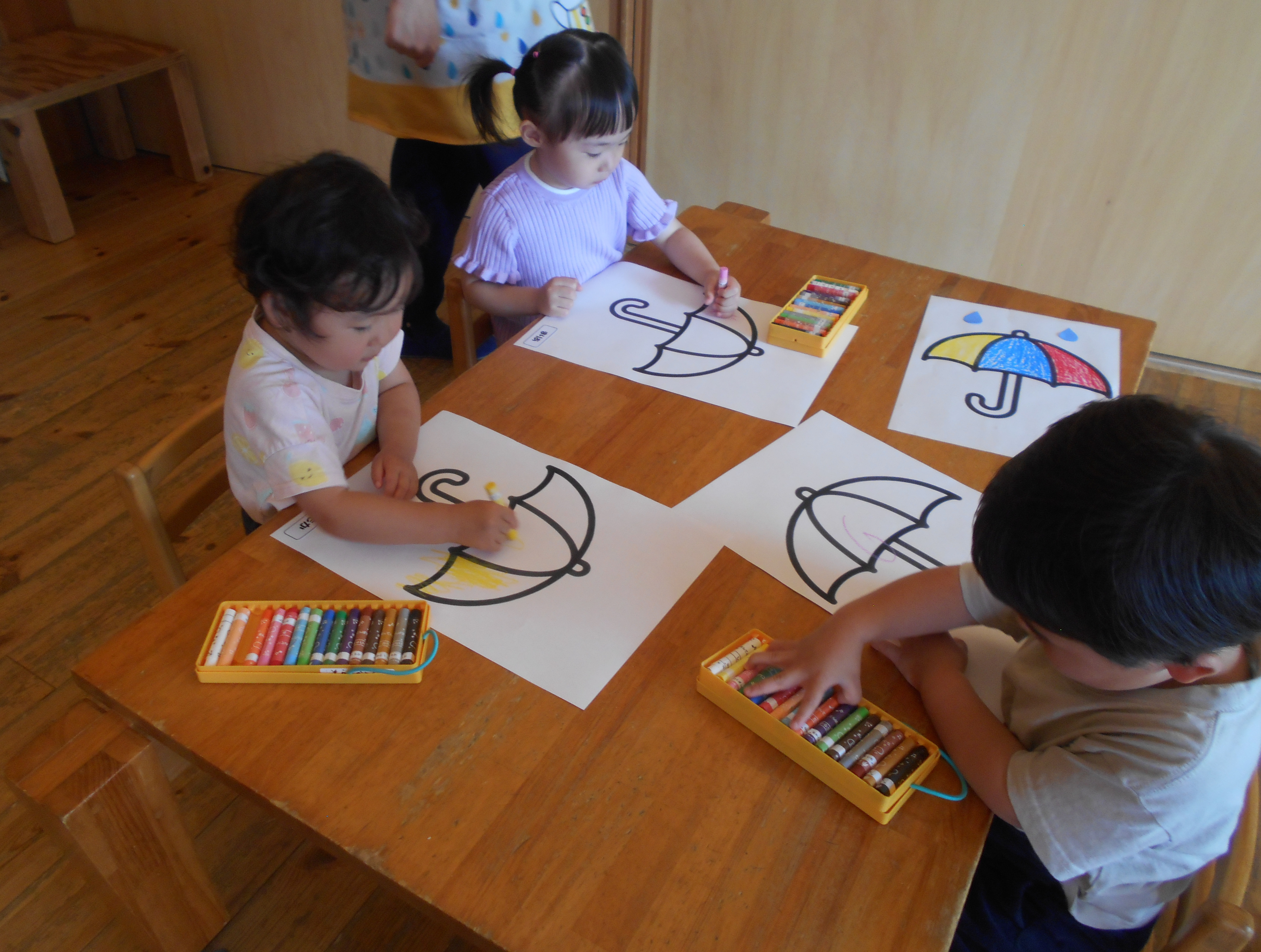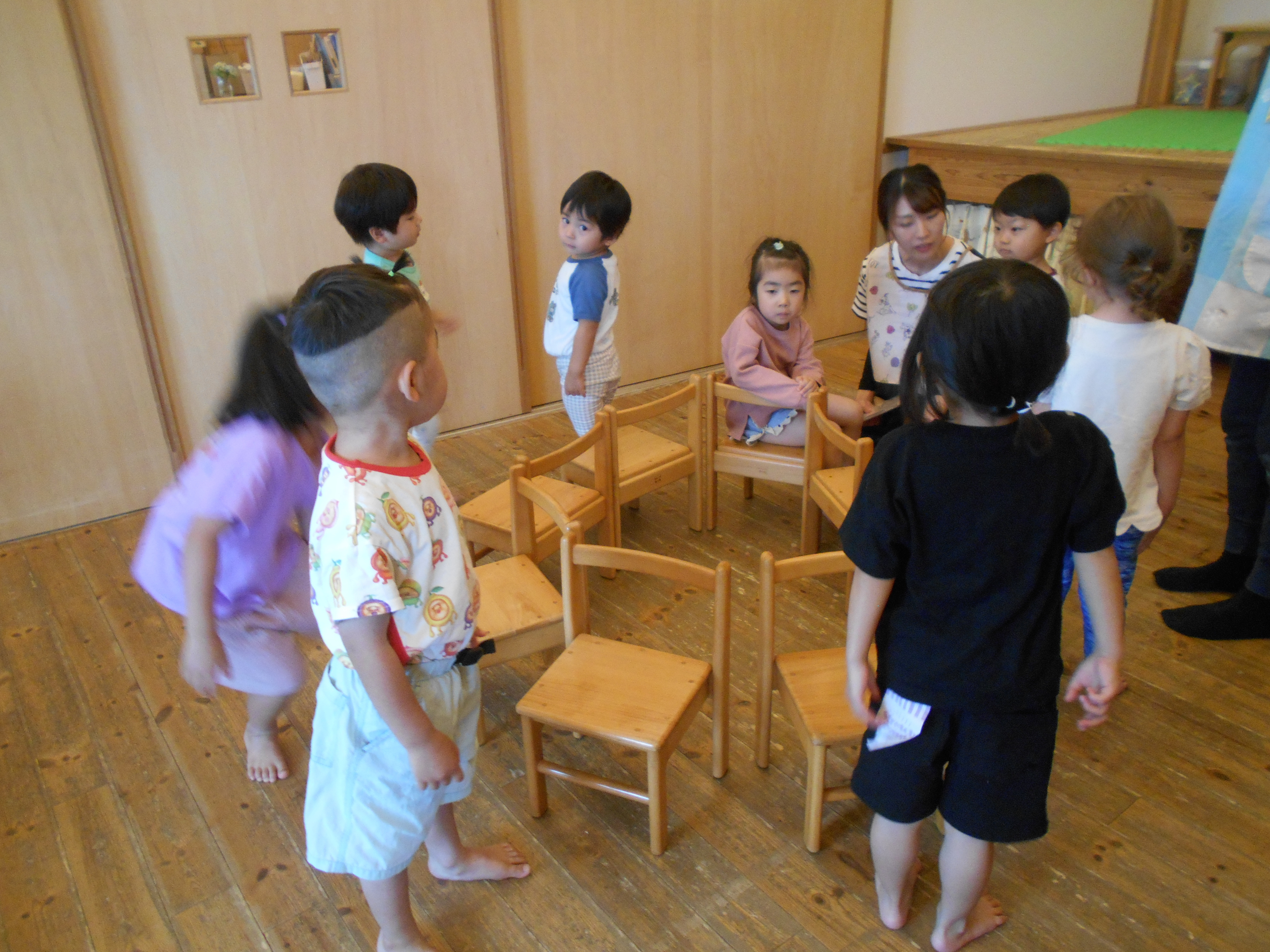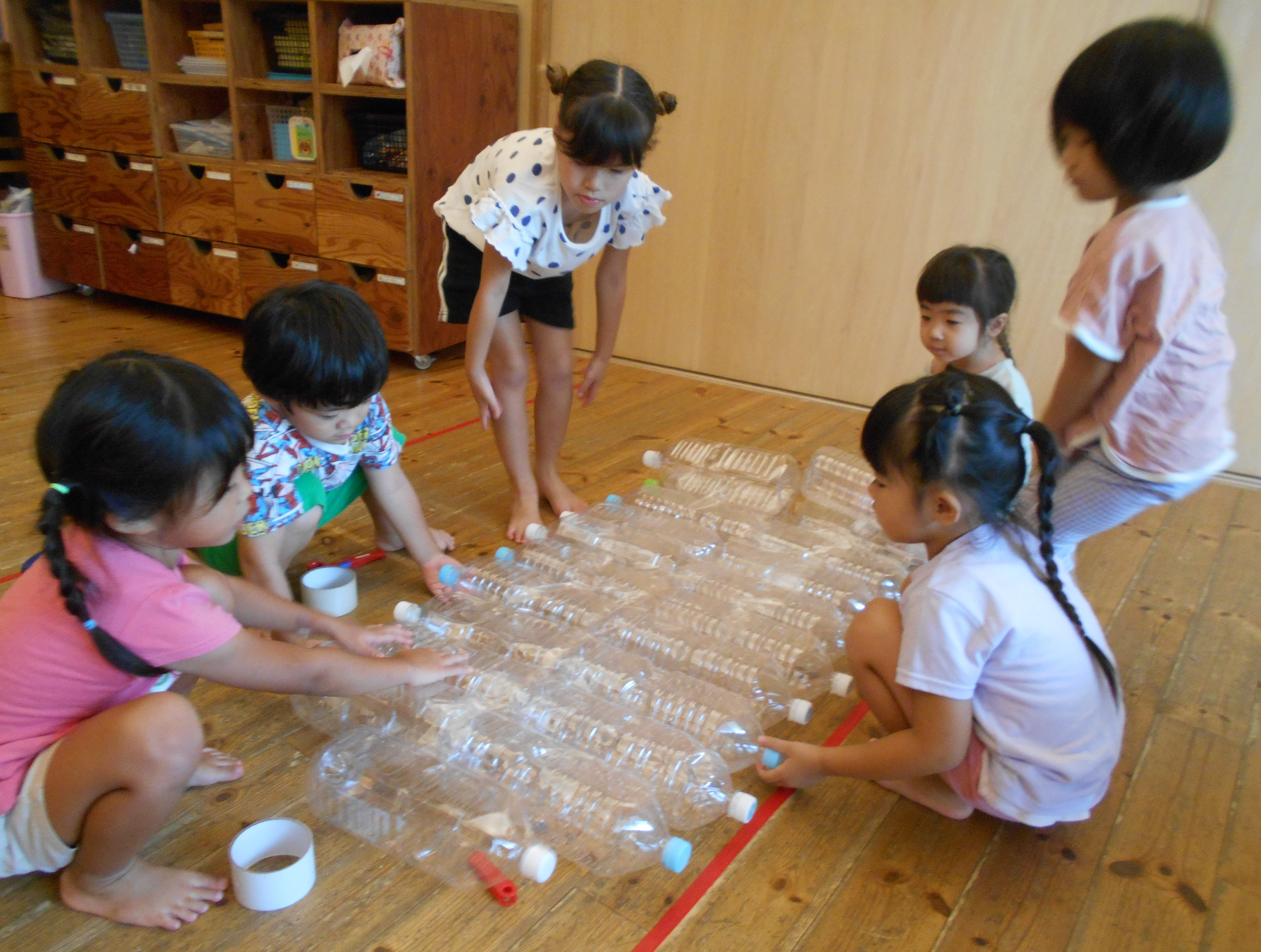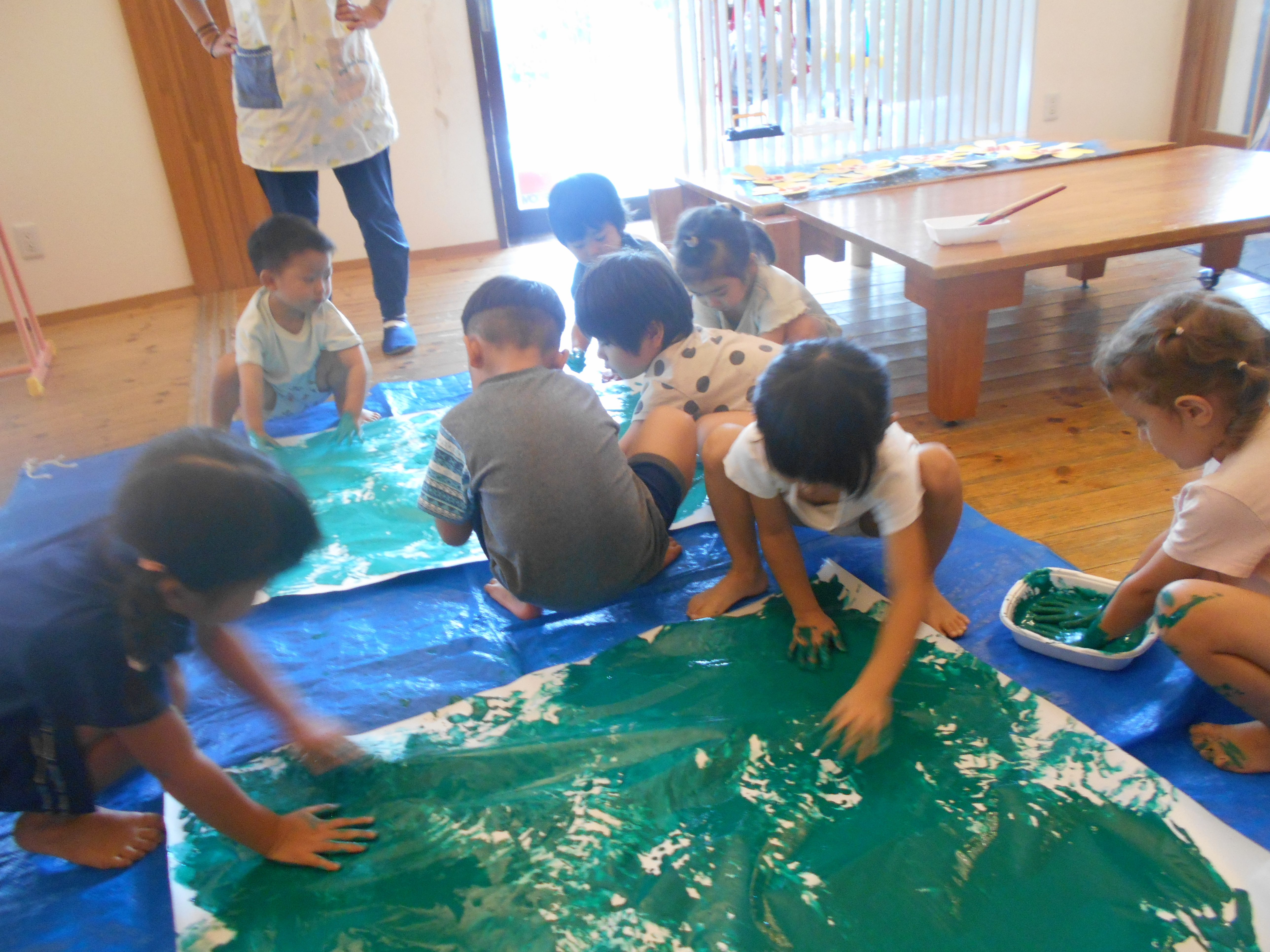 ほしつき暑い日が続いていますが、室内でもマット遊びや製作をして楽しく過ごしています。 |