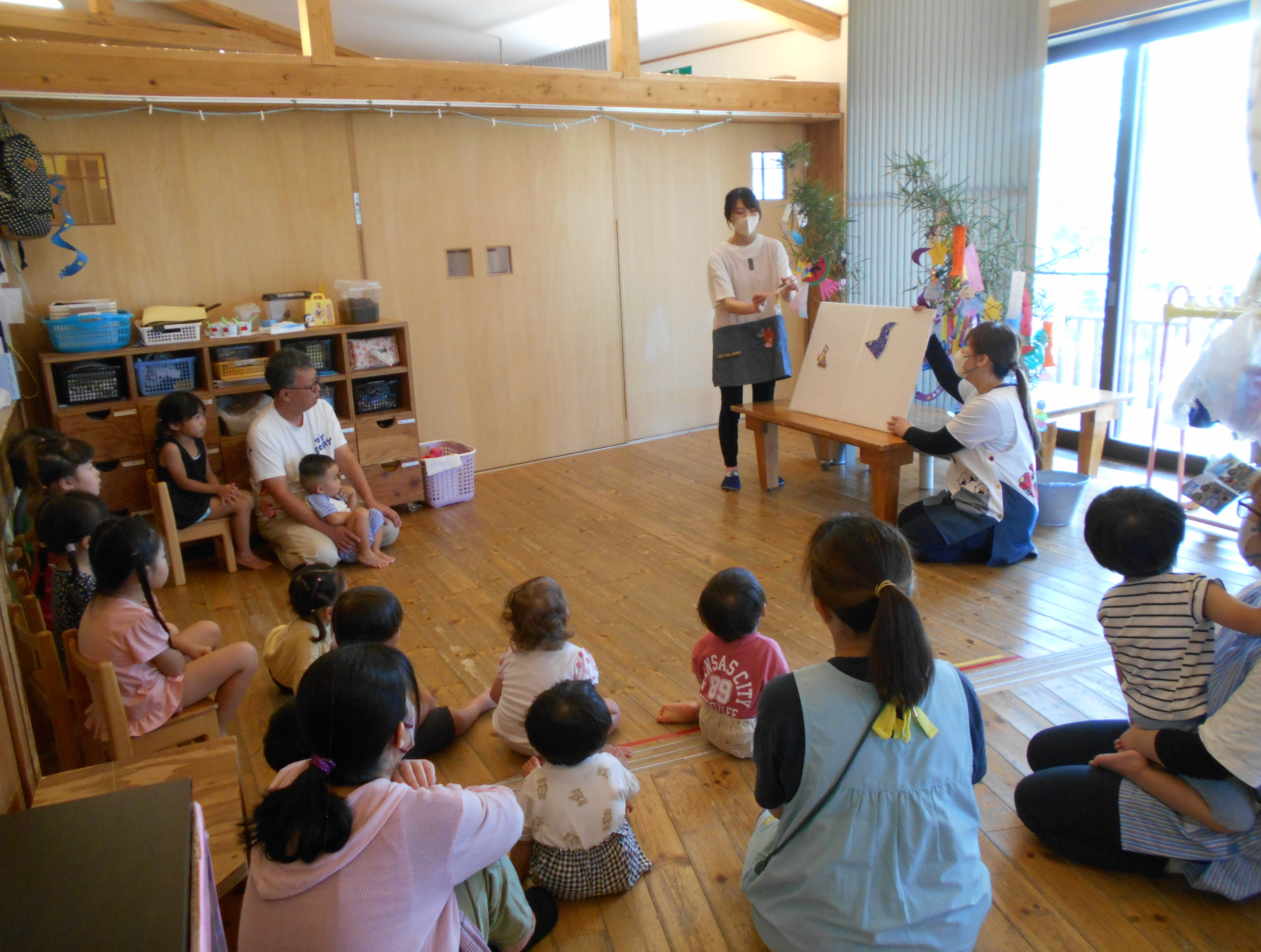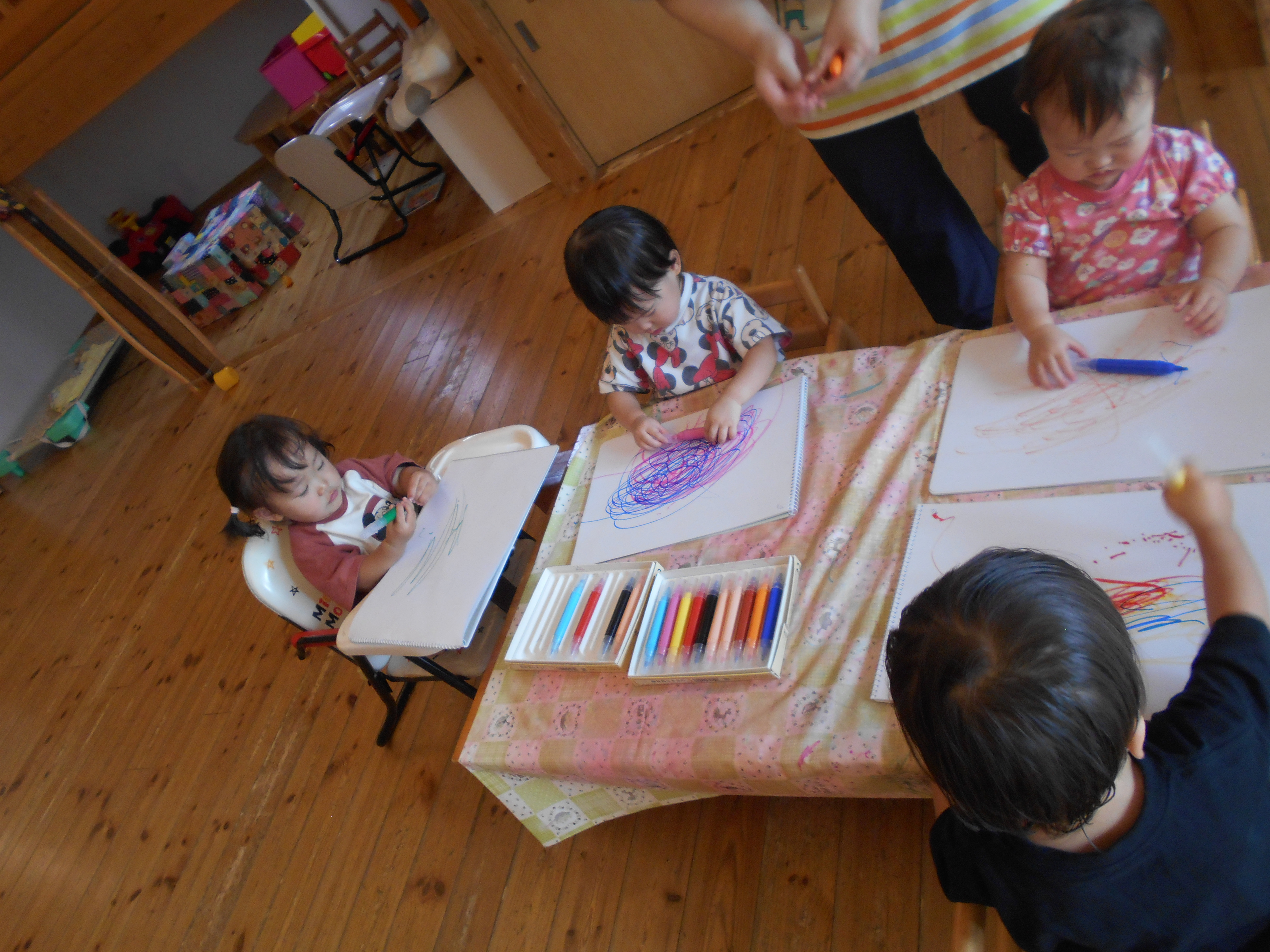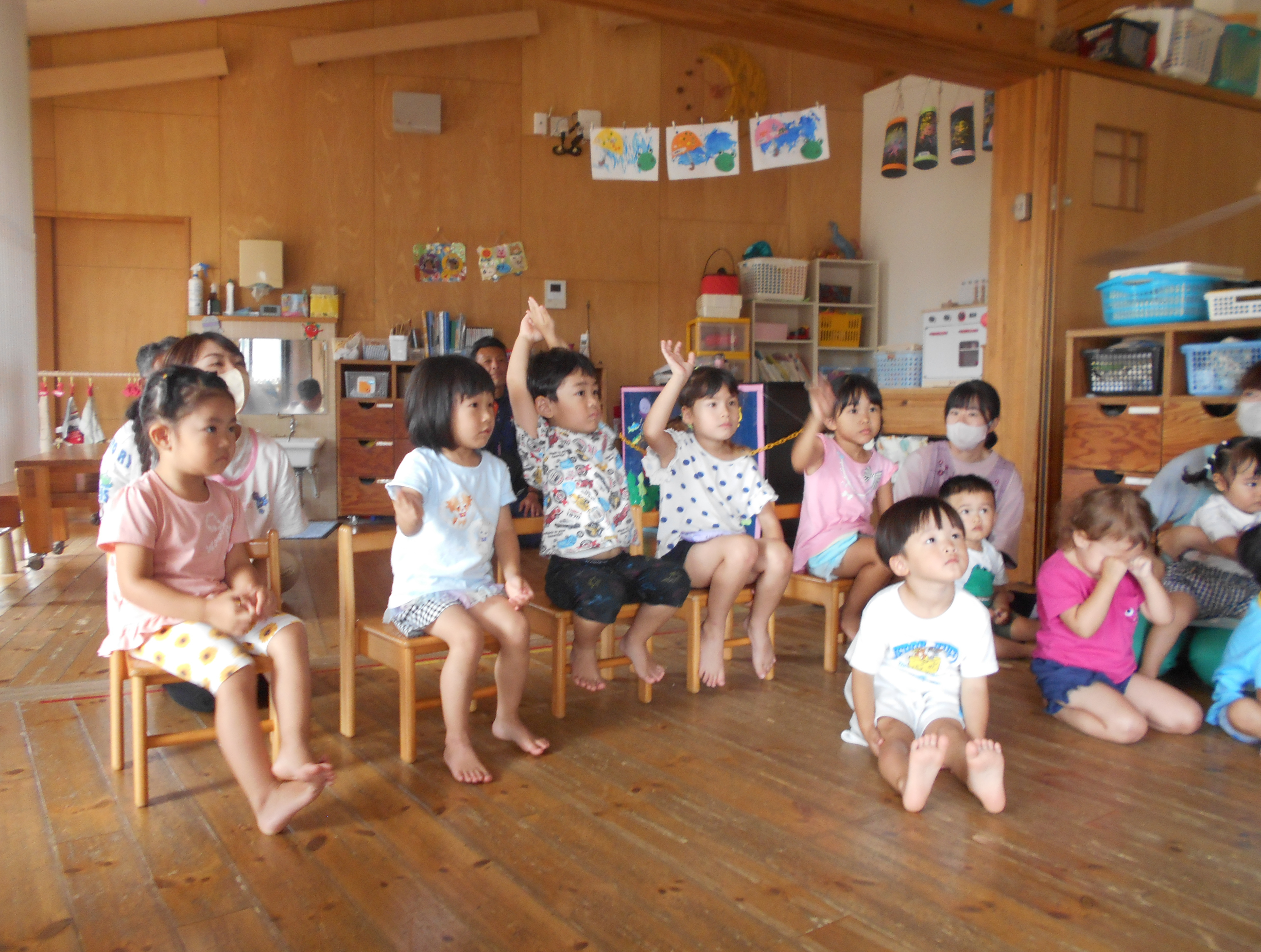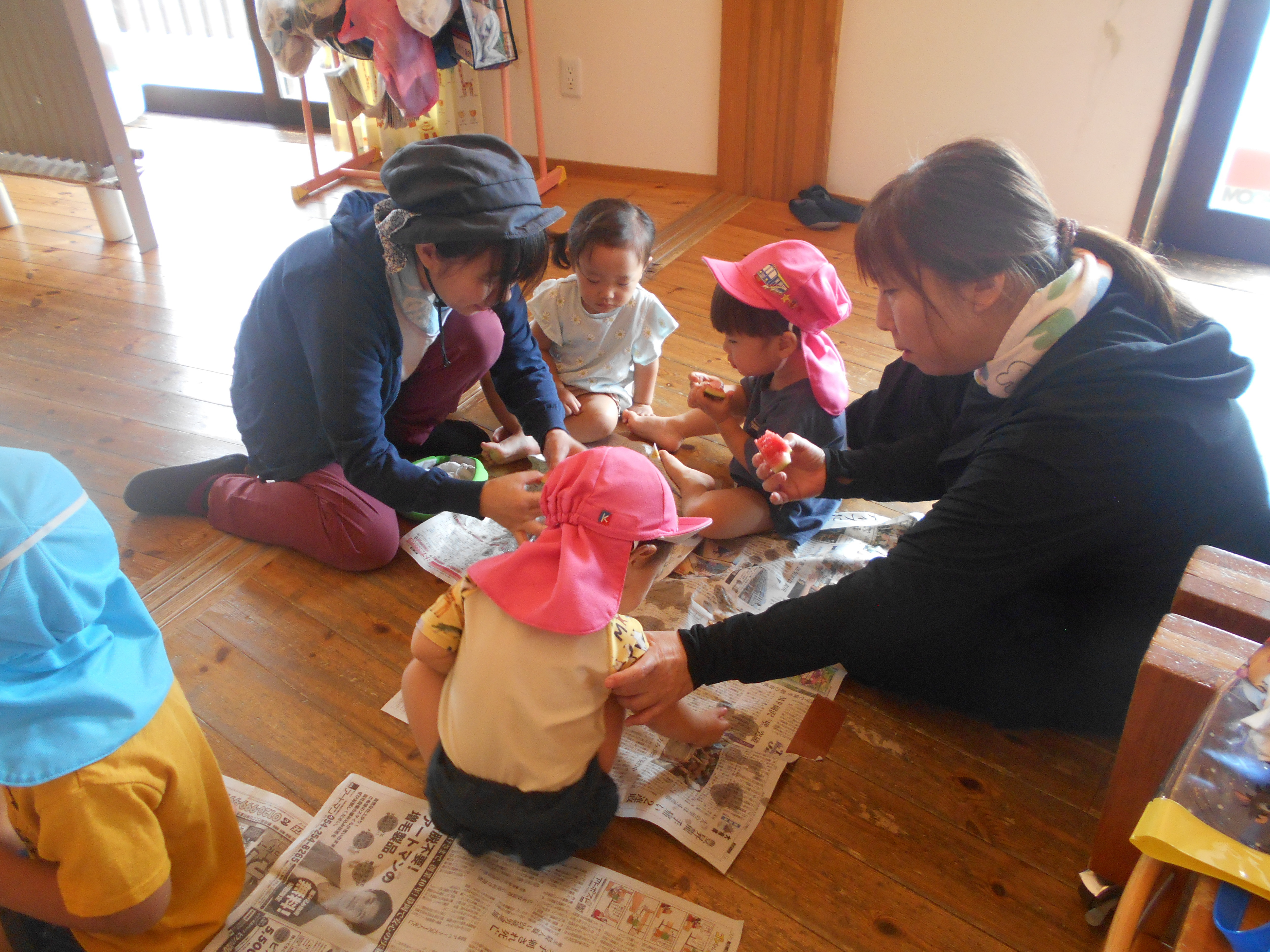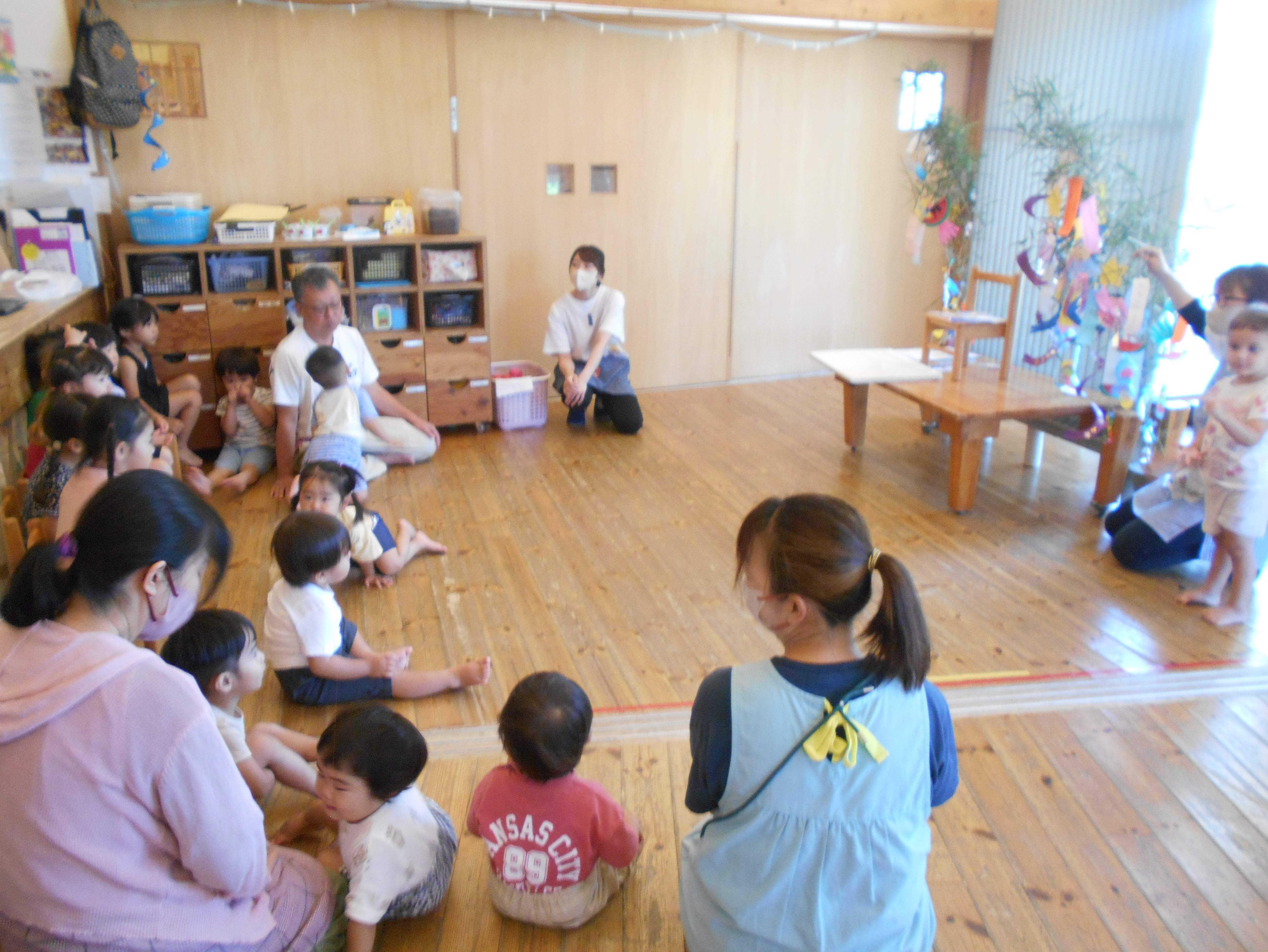 ほしつき暑い日が続いていますが、室内でもマット遊びや製作をして楽しく過ごしています。 |