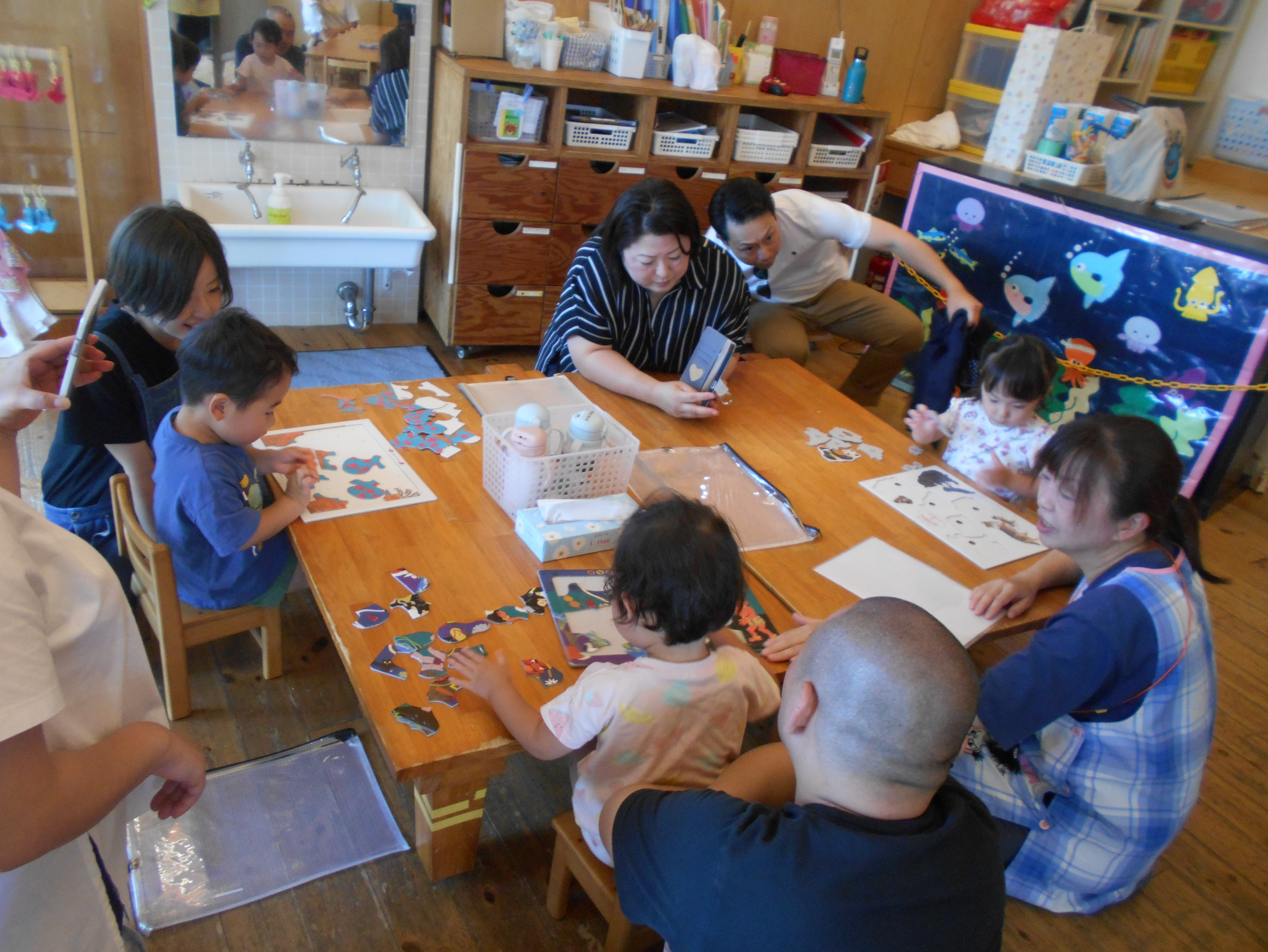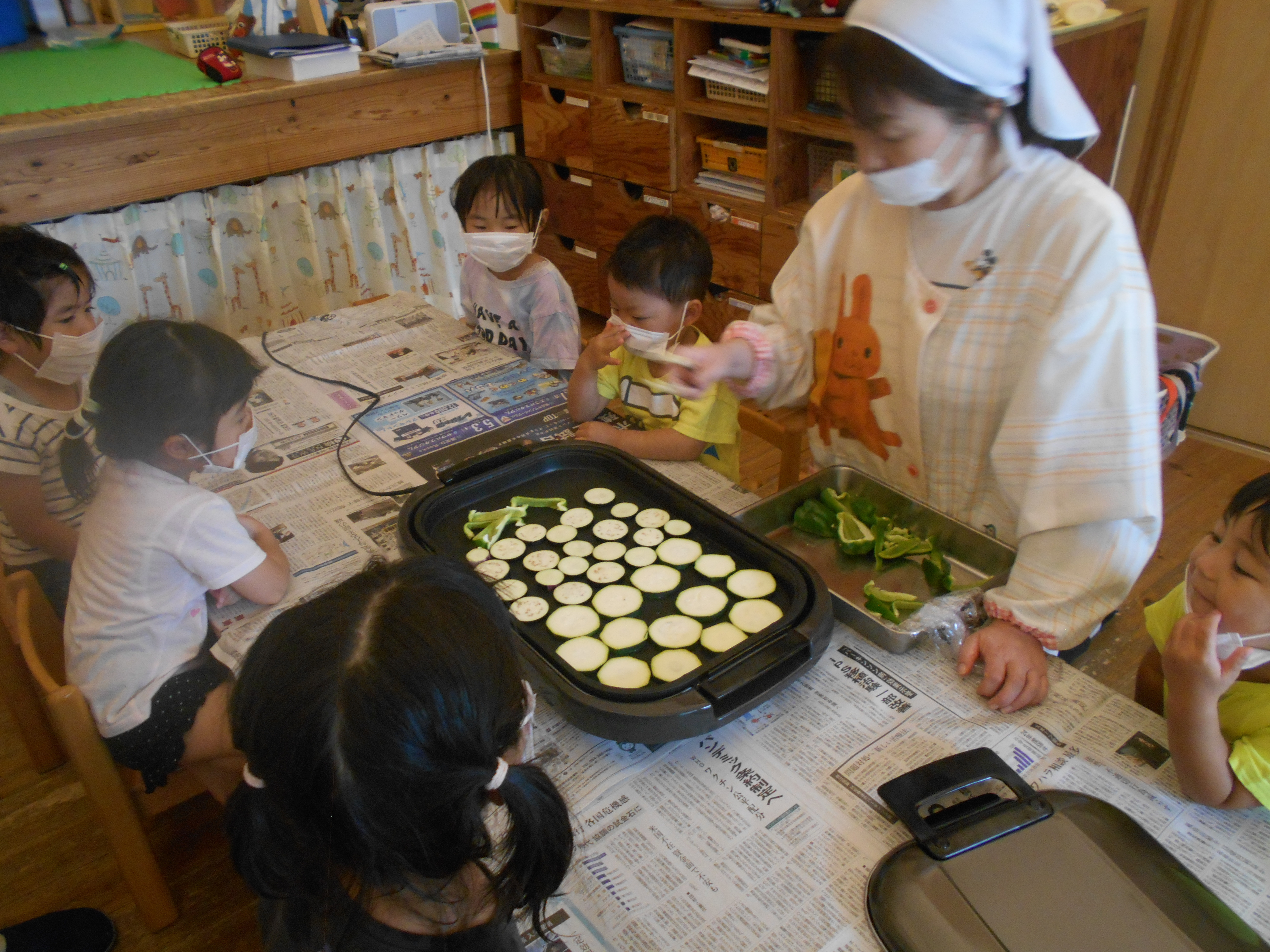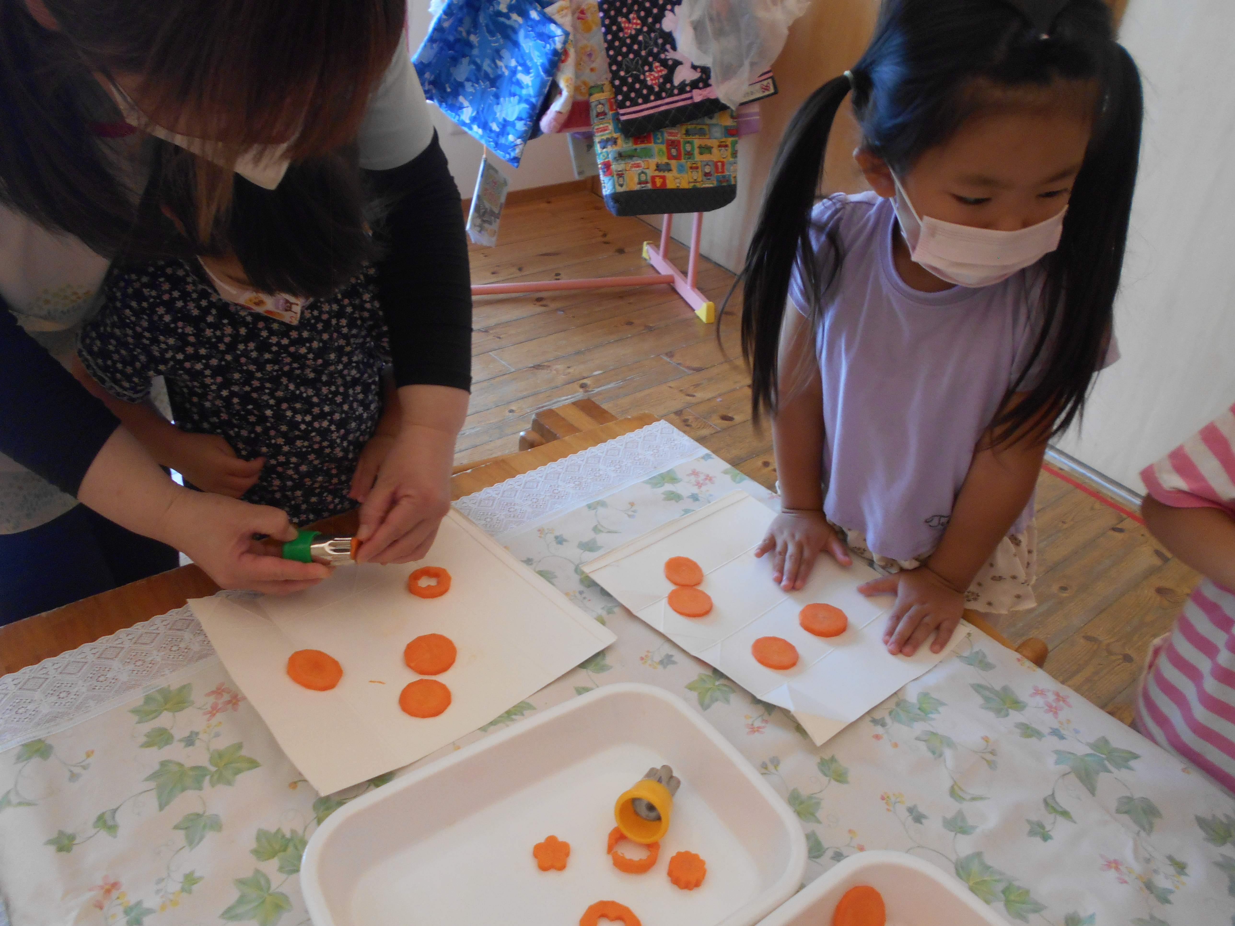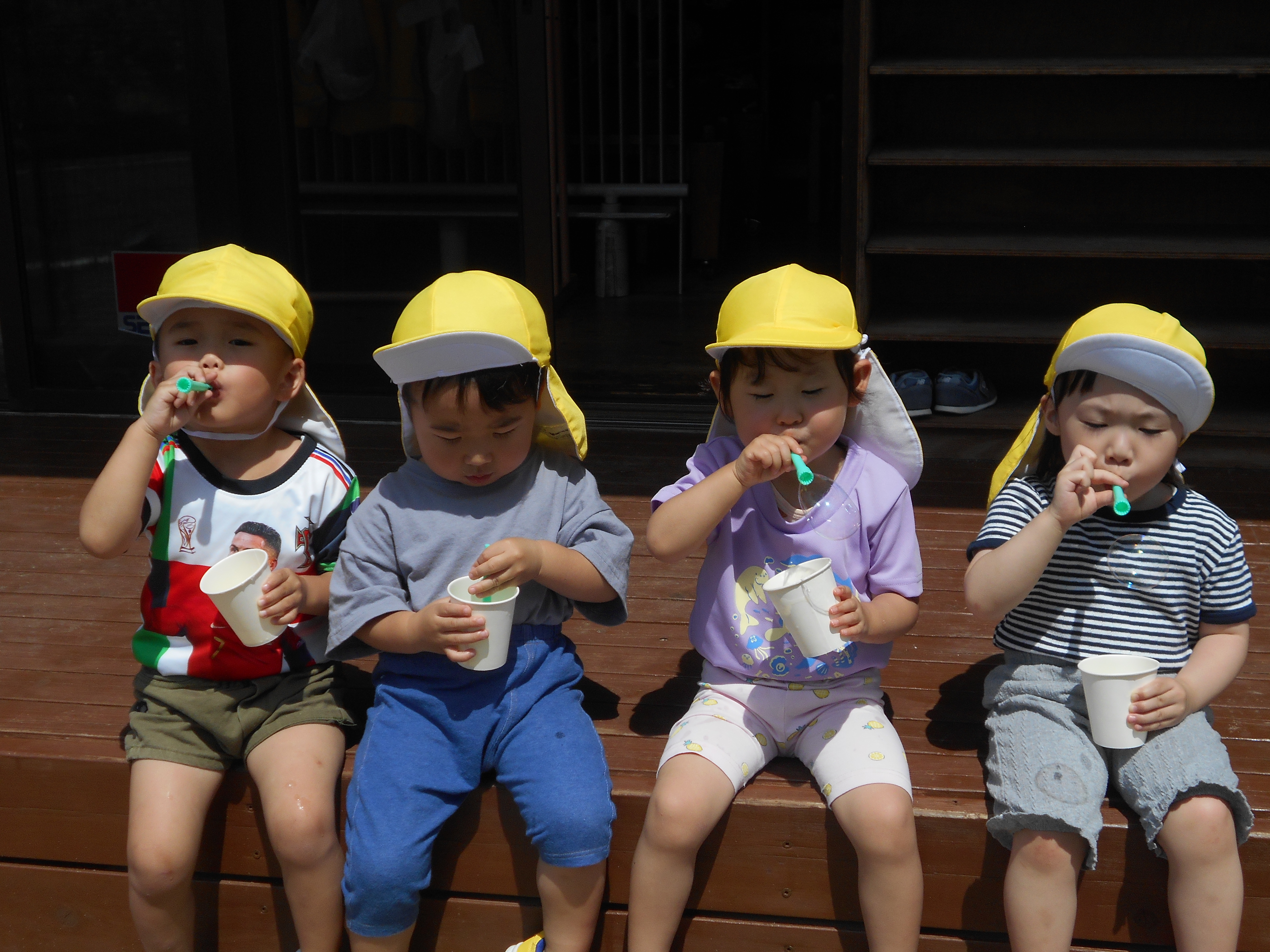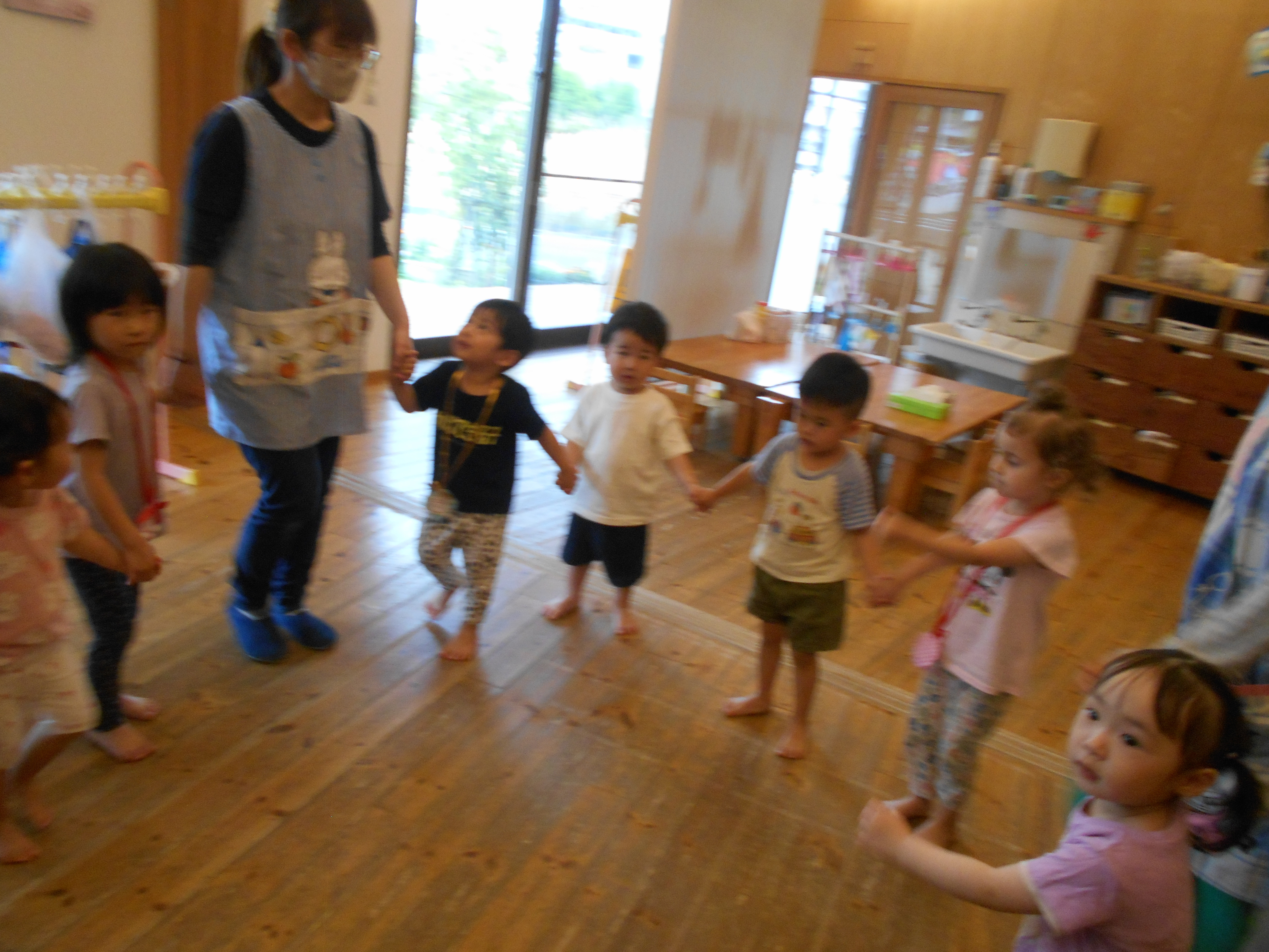 ほしつき暑い日が続いていますが、室内でもマット遊びや製作をして楽しく過ごしています。 |
