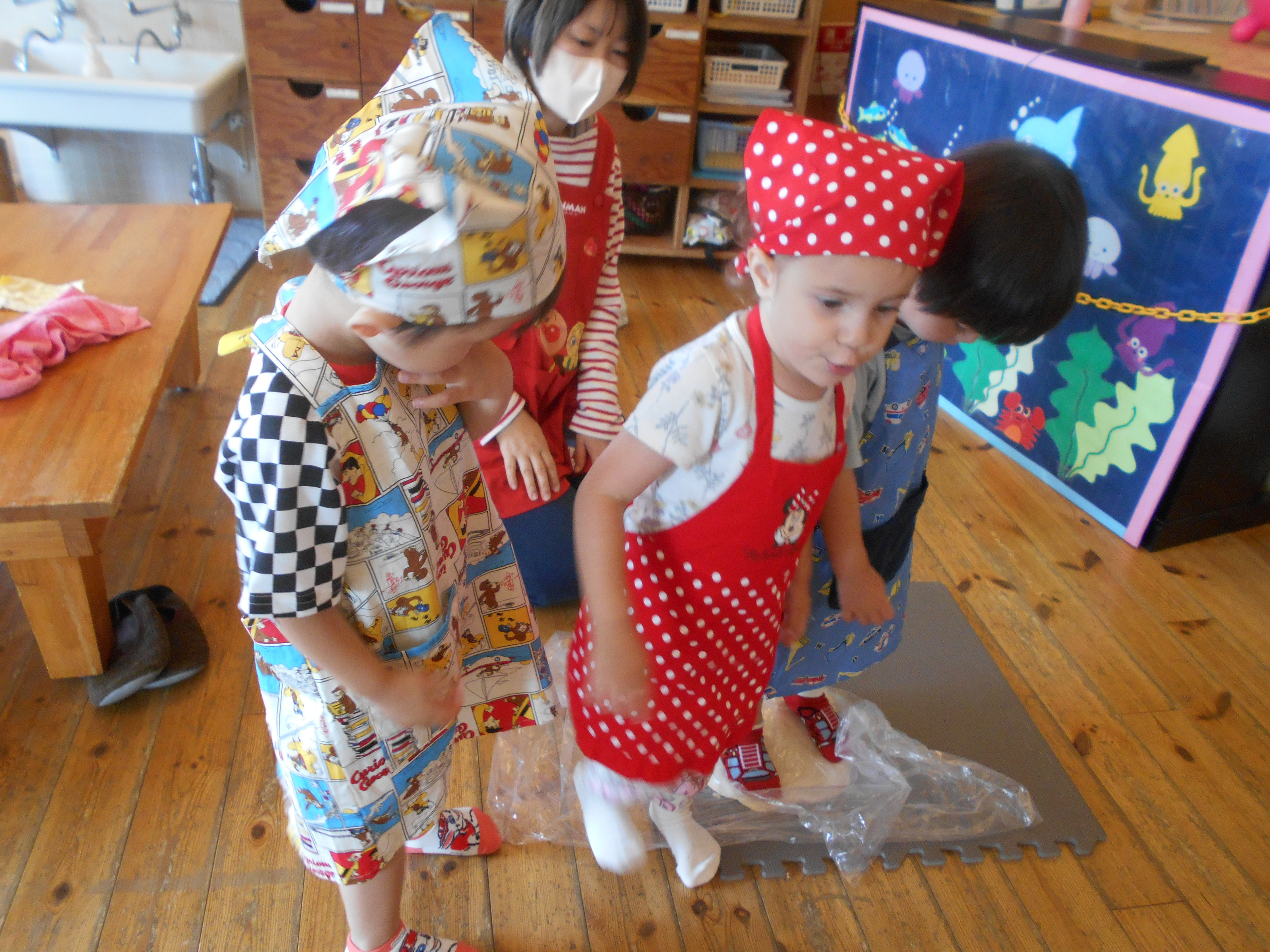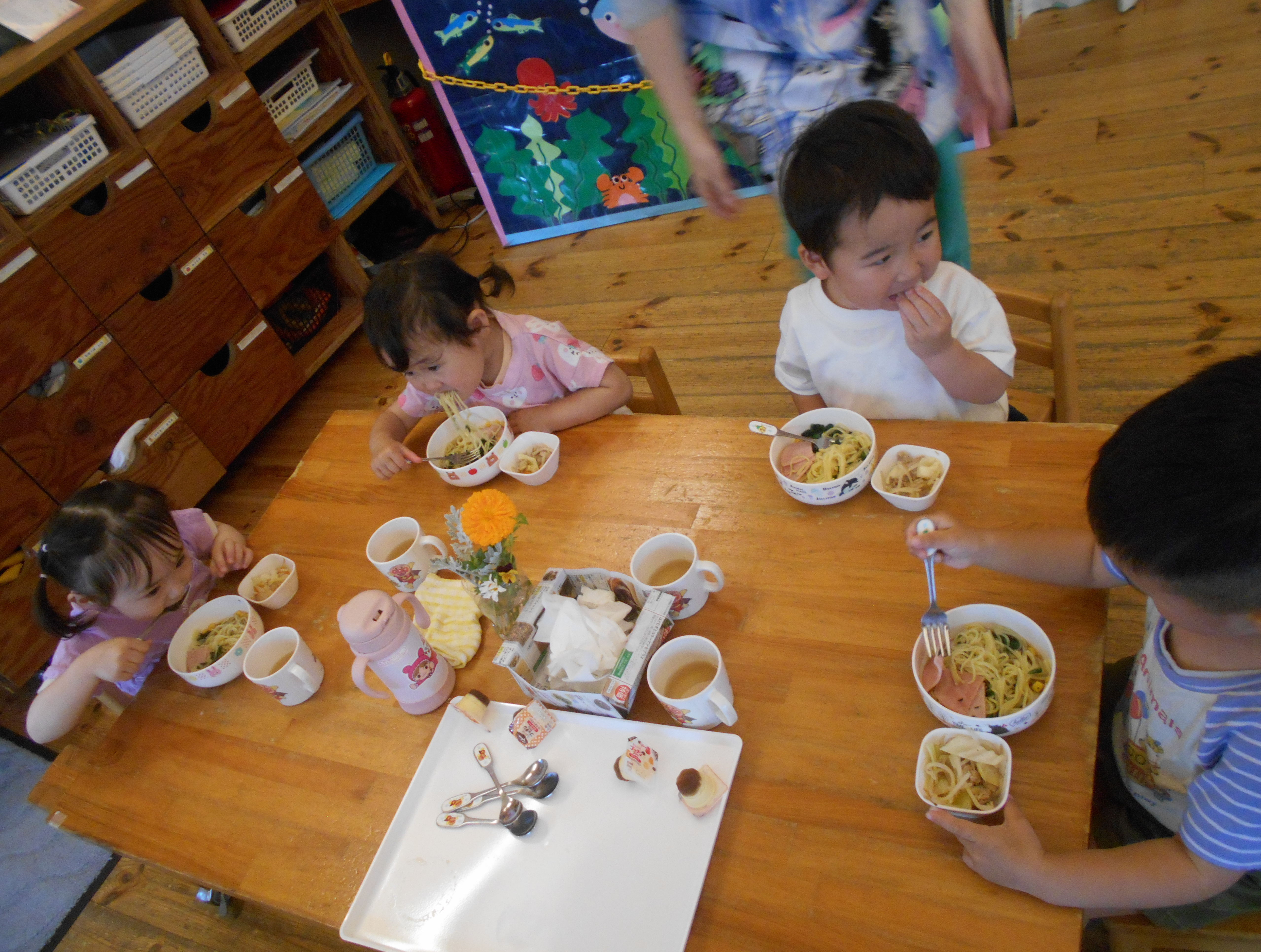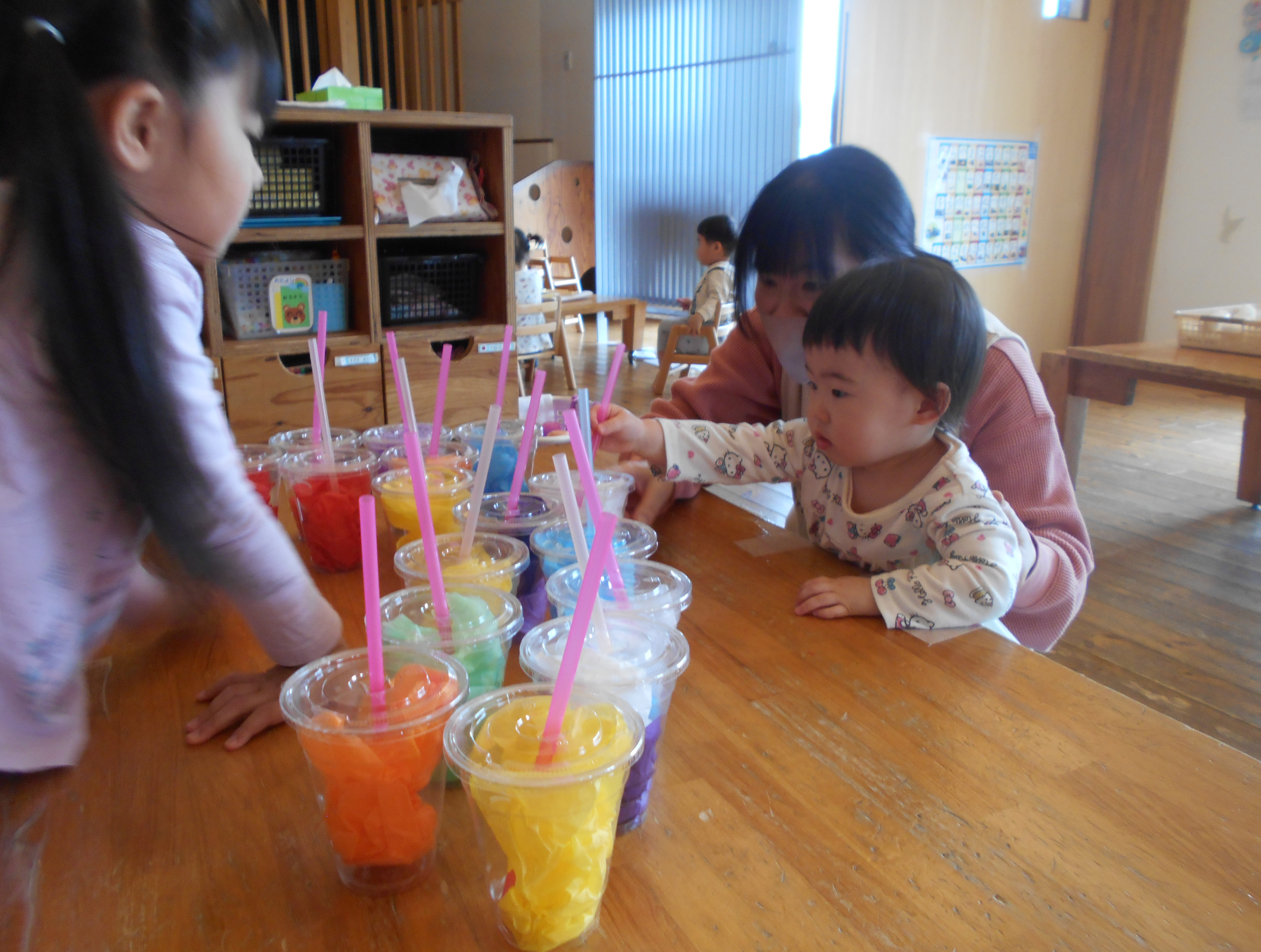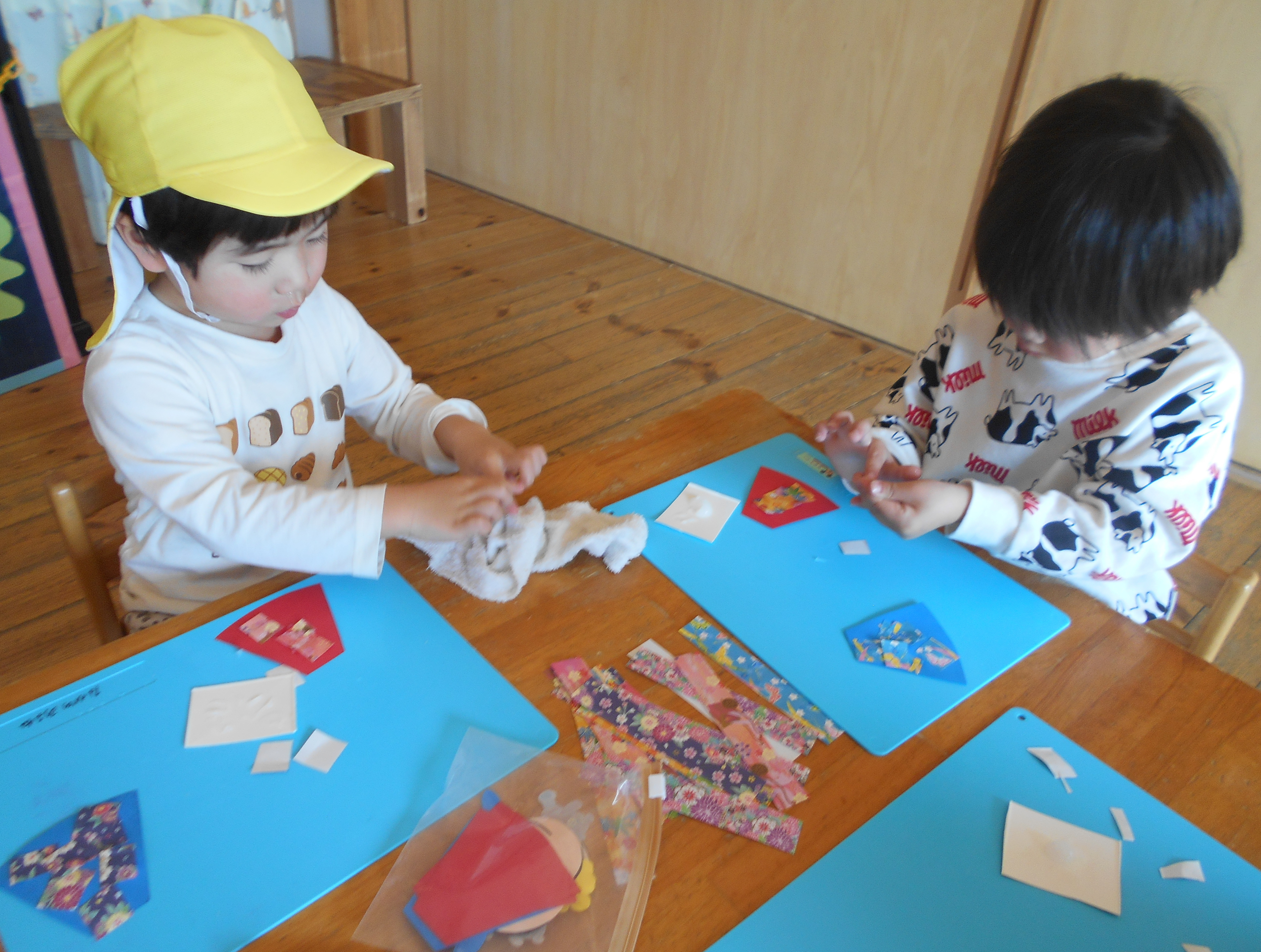 ほしつき暑い日が続いていますが、室内でもマット遊びや製作をして楽しく過ごしています。 |