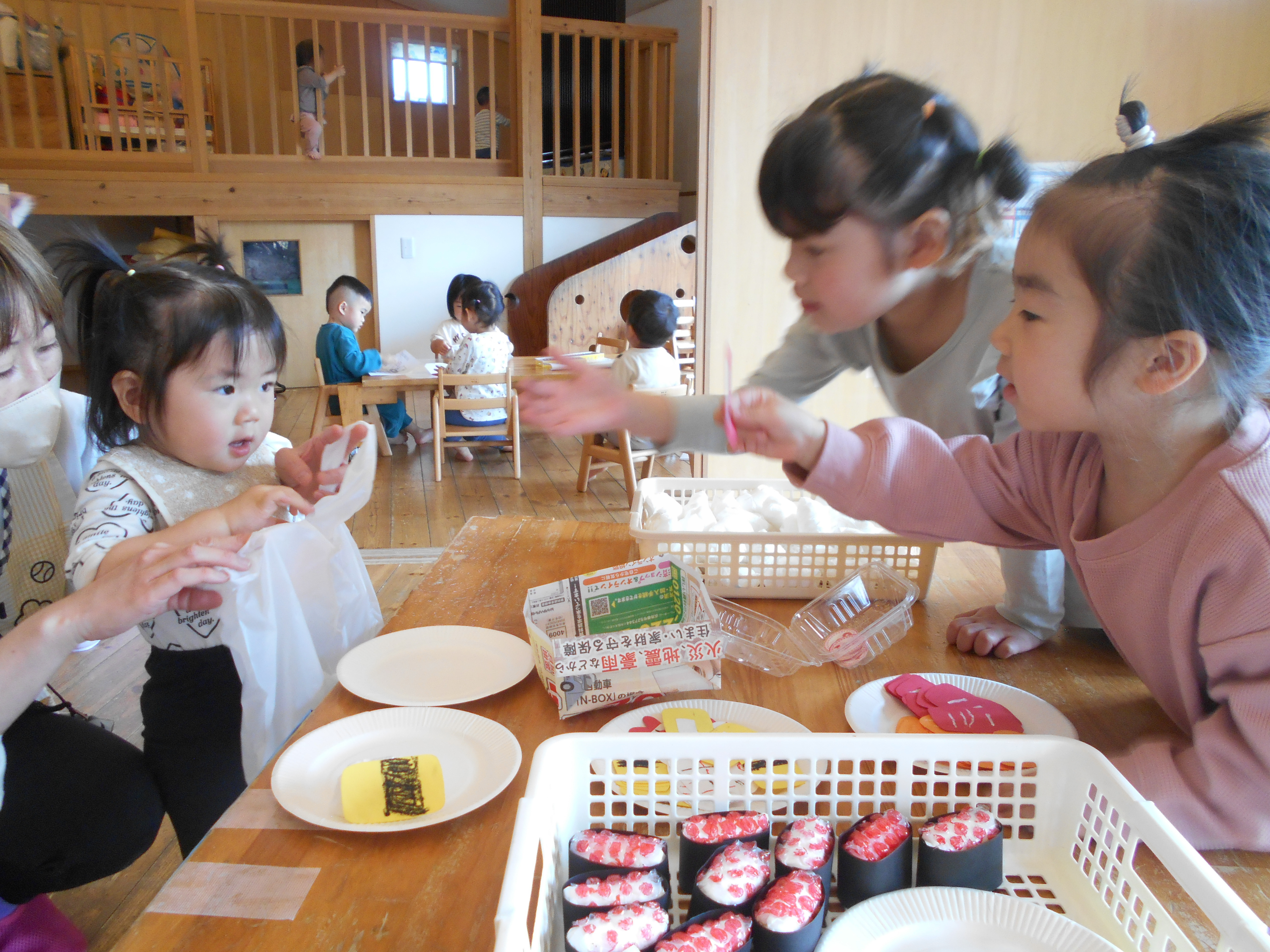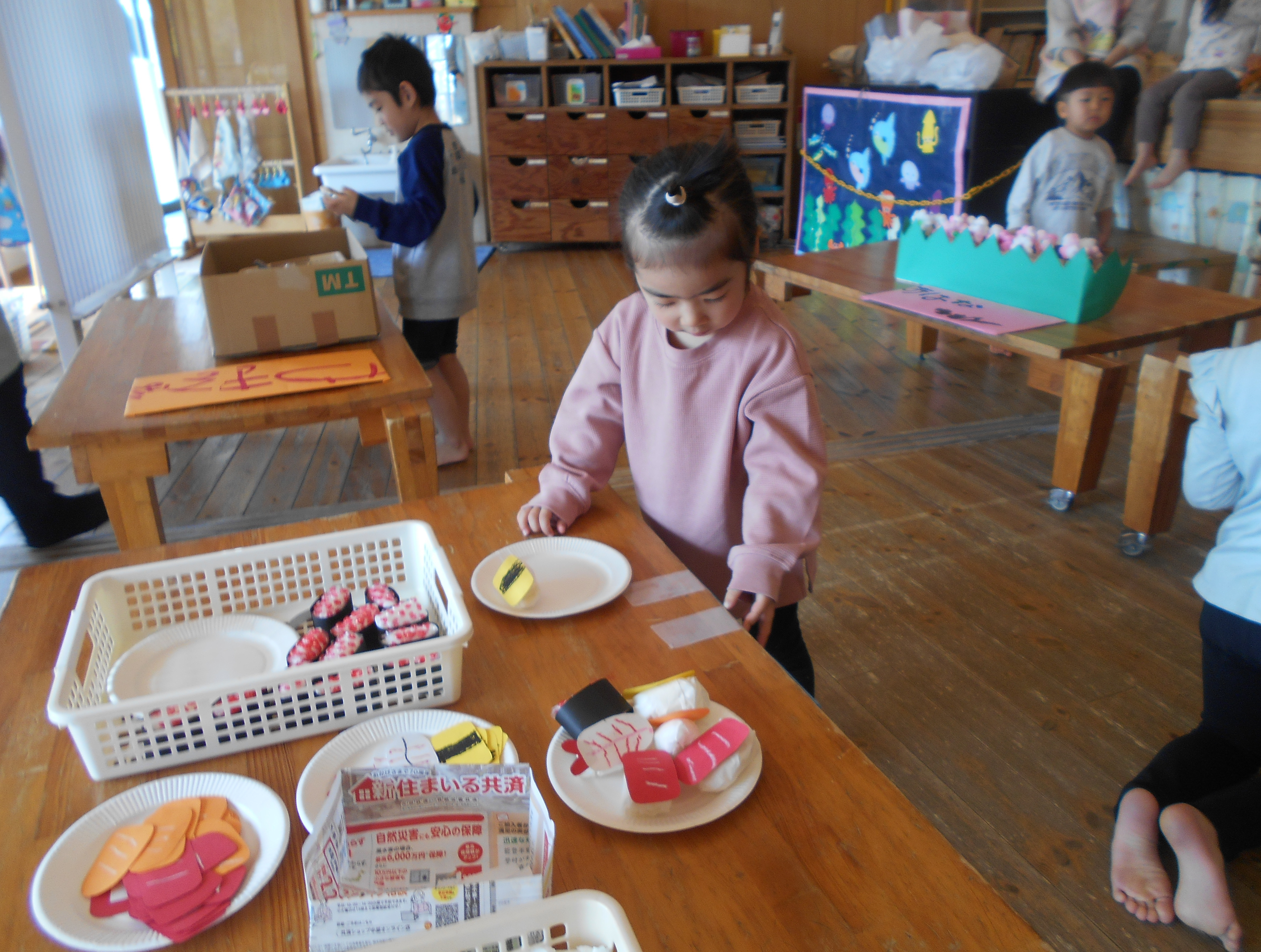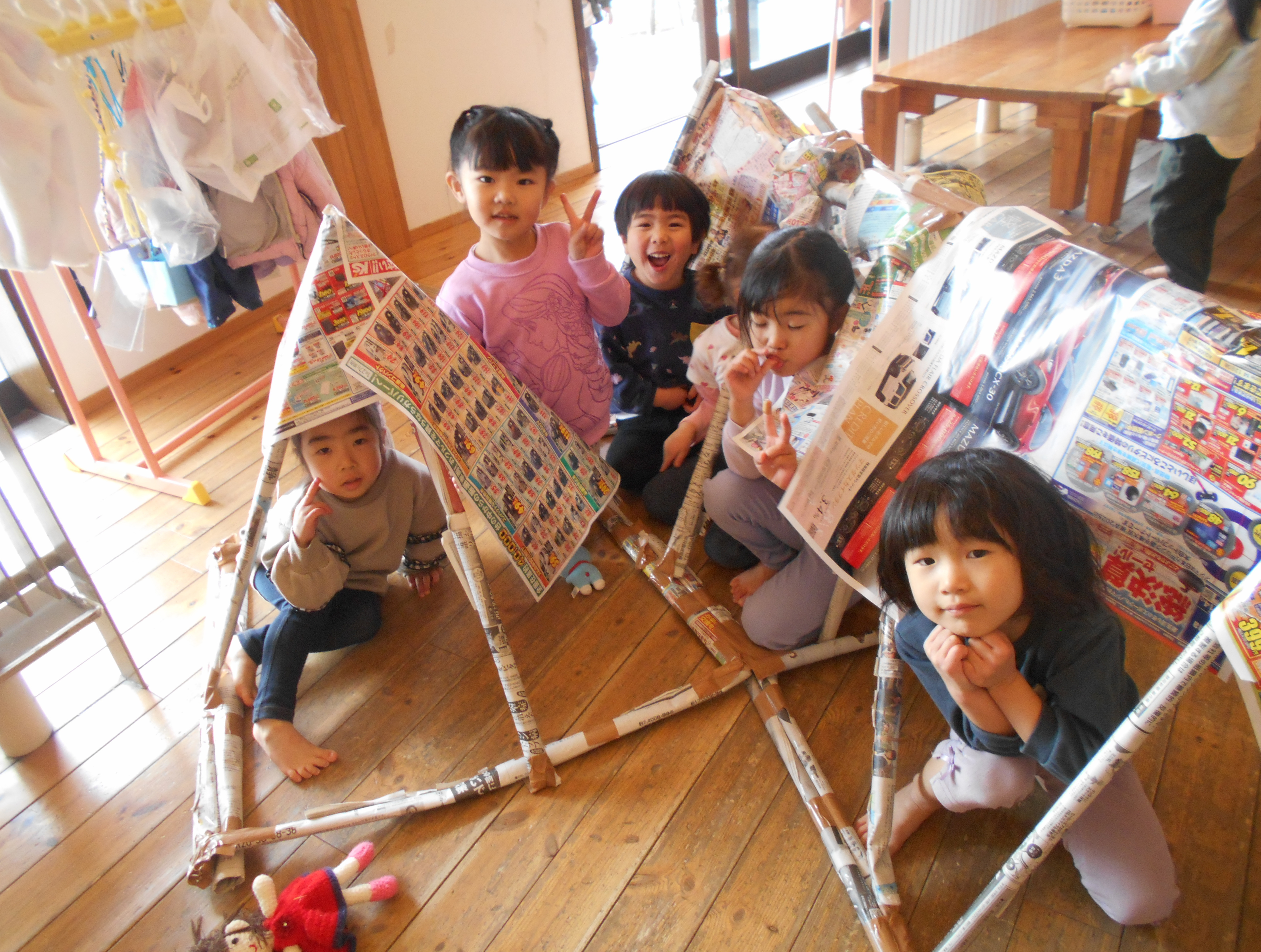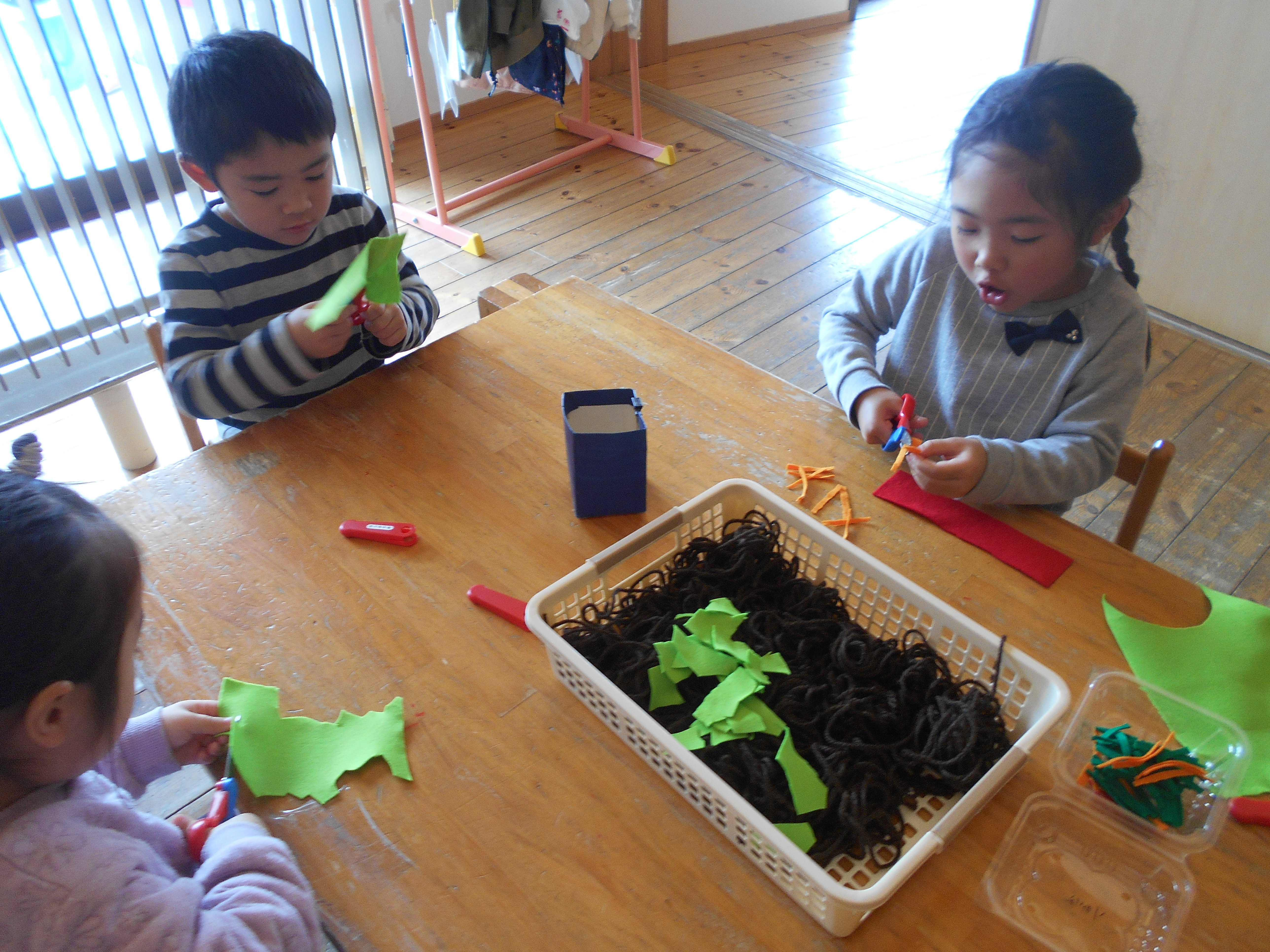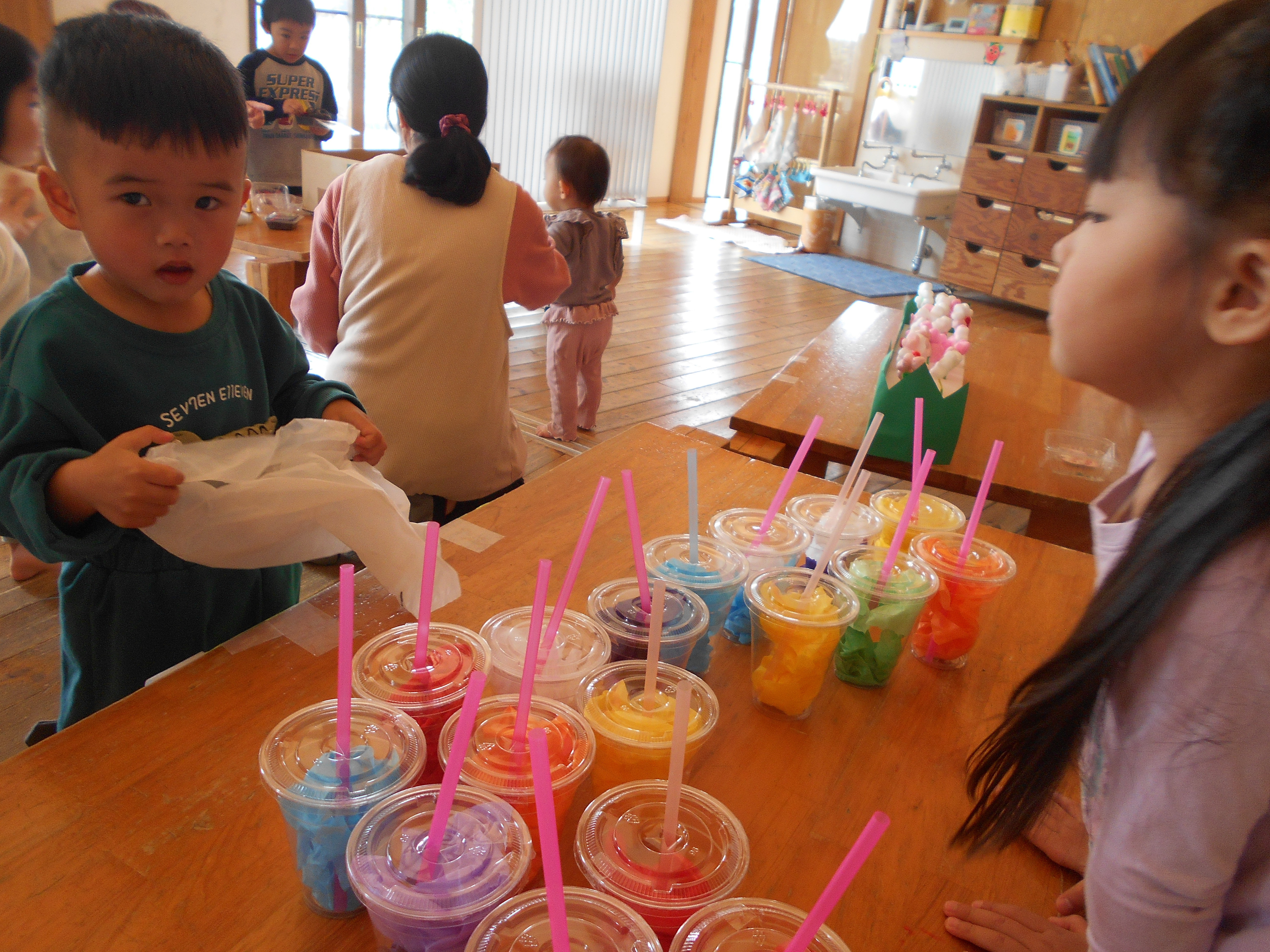 ほしつき暑い日が続いていますが、室内でもマット遊びや製作をして楽しく過ごしています。 |