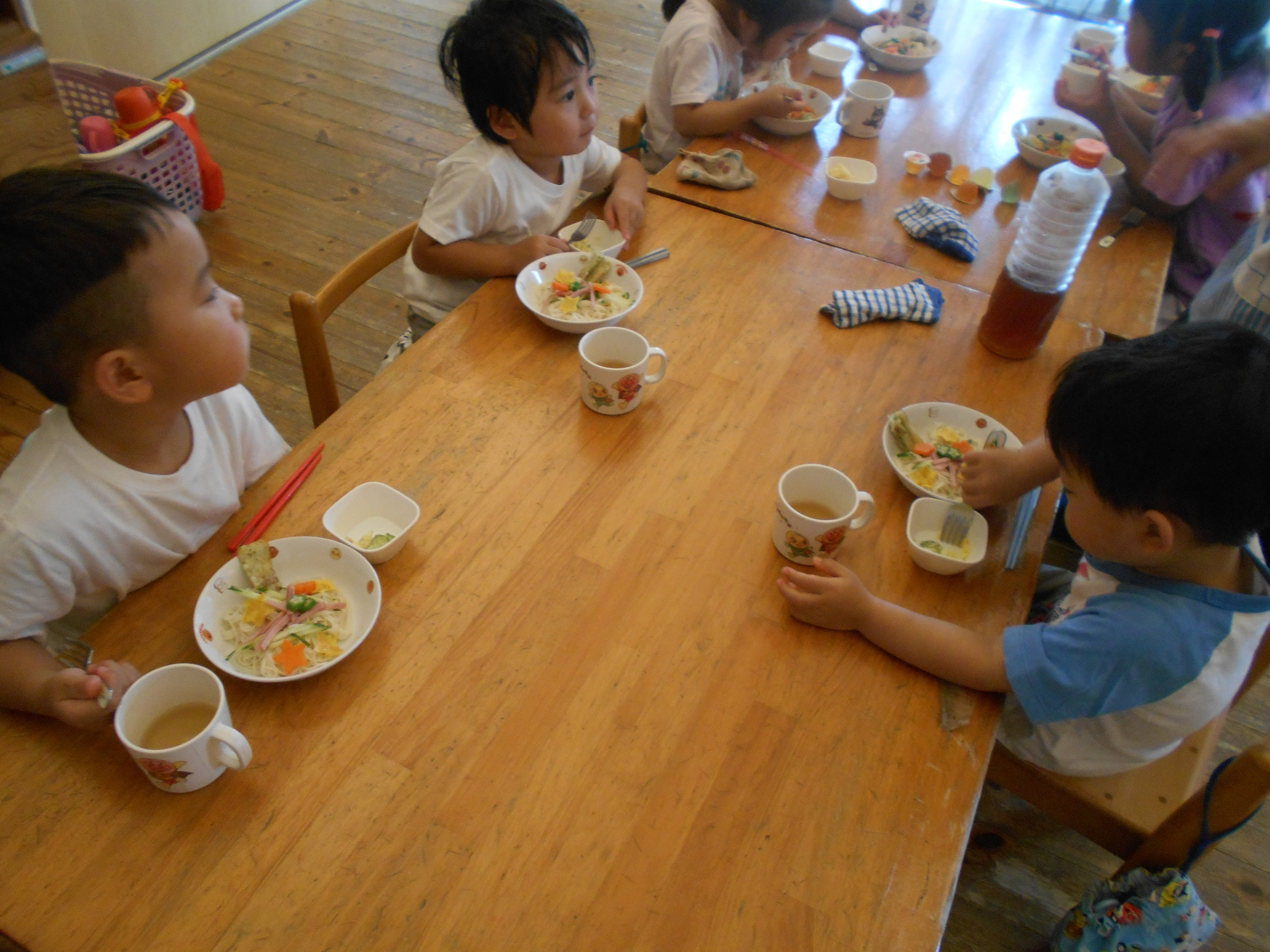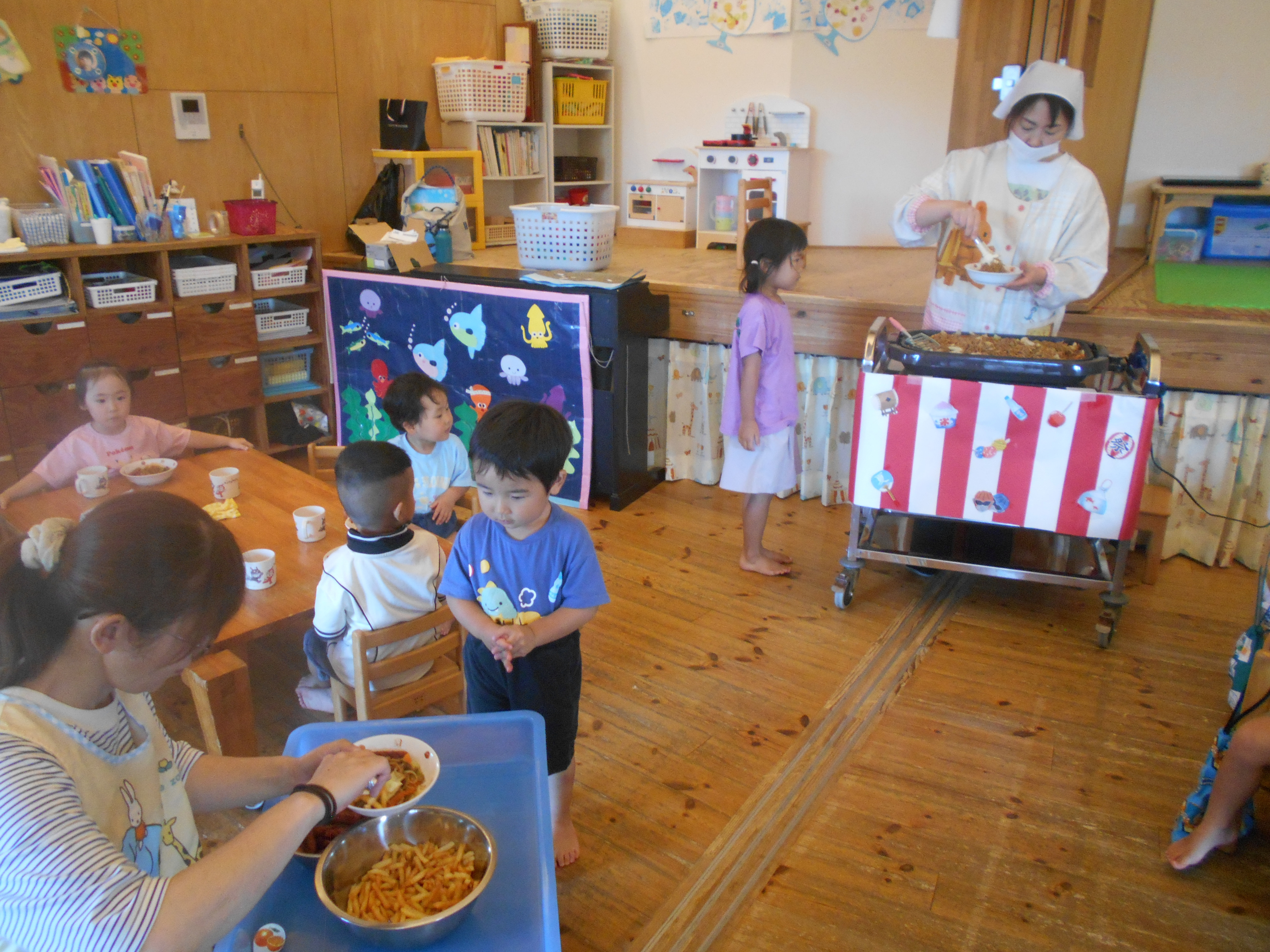 なつまつりメニューなつまつりのお楽しみ給食を食べました。 |