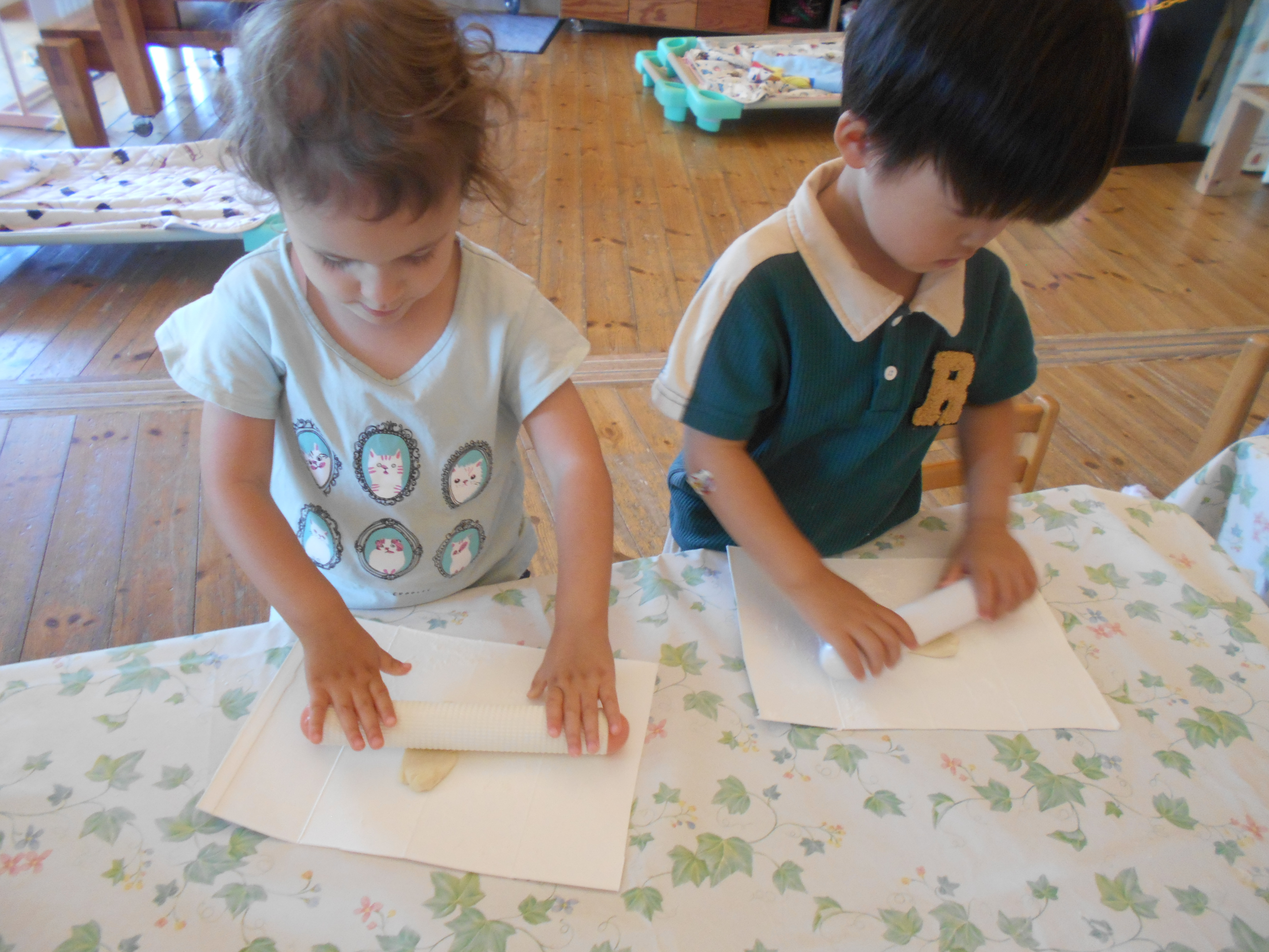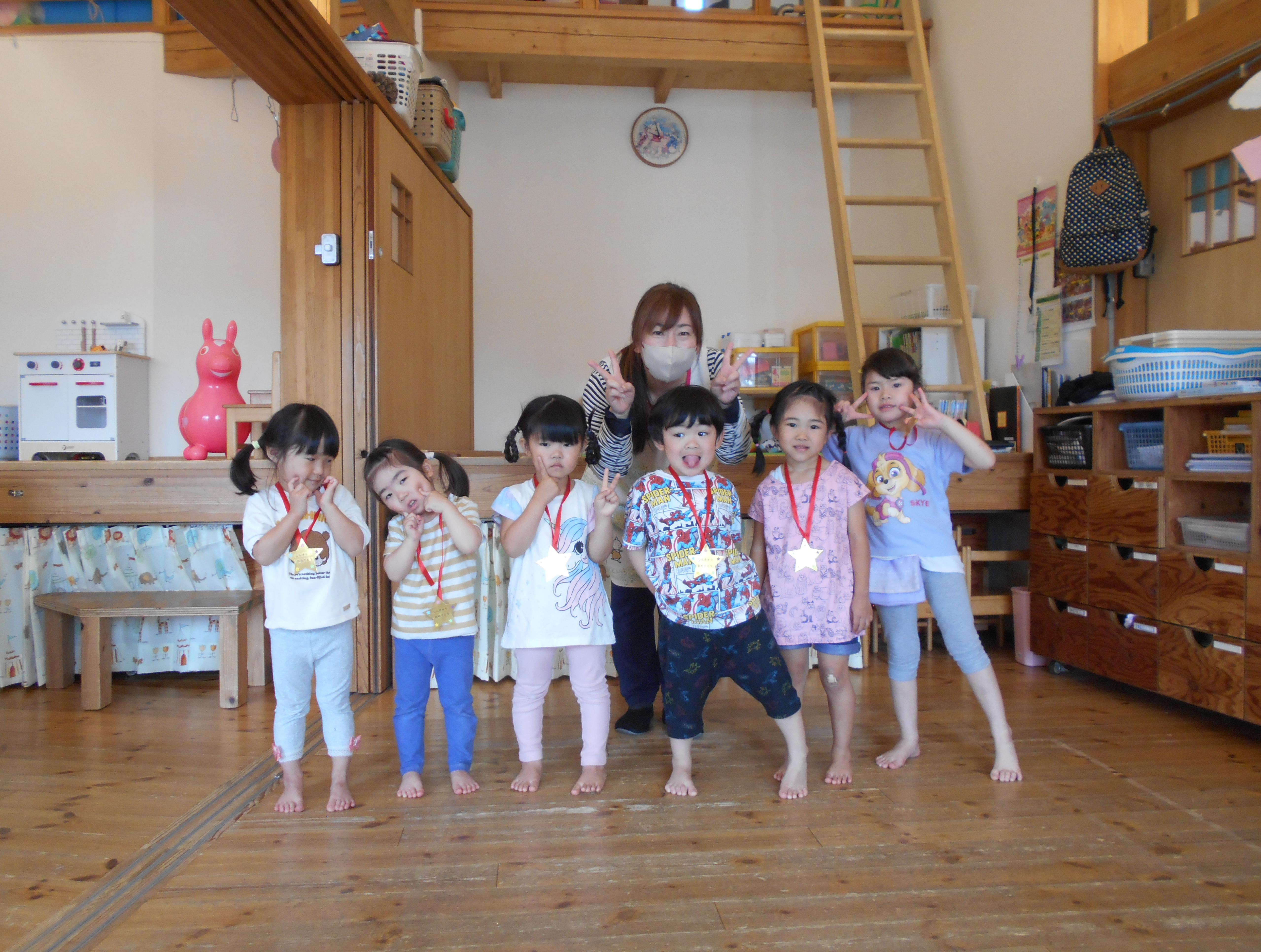 ほしつき暑い日が続いていますが、室内でもマット遊びや製作をして楽しく過ごしています。 |
